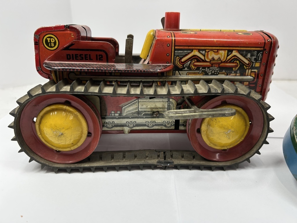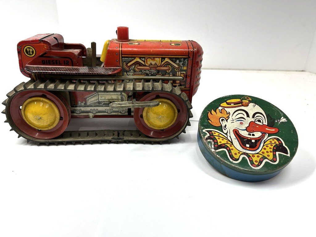 MARX MECHANICAL TRACTOR AND VINTAGE CLOWN TOY