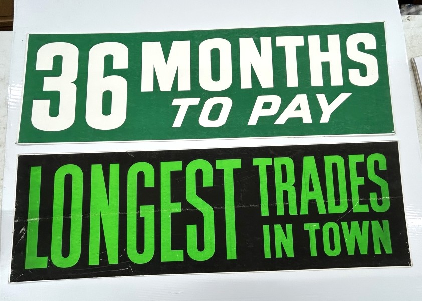 VINTAGE CARDBOARD FINANCING SIGNS 44″LX14″H