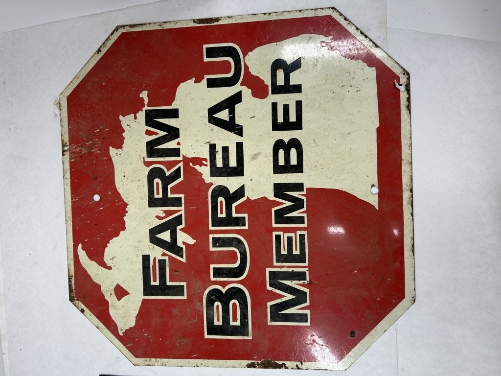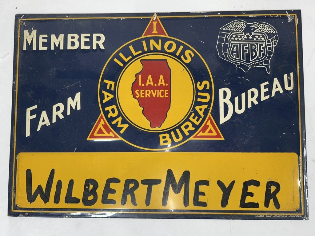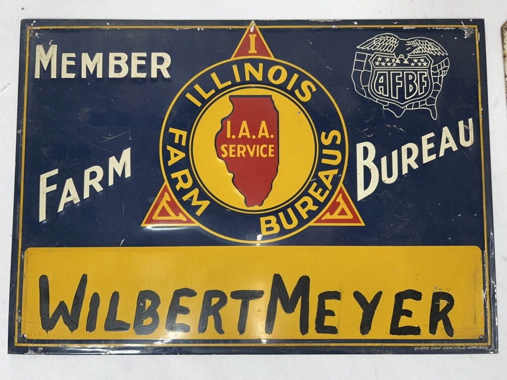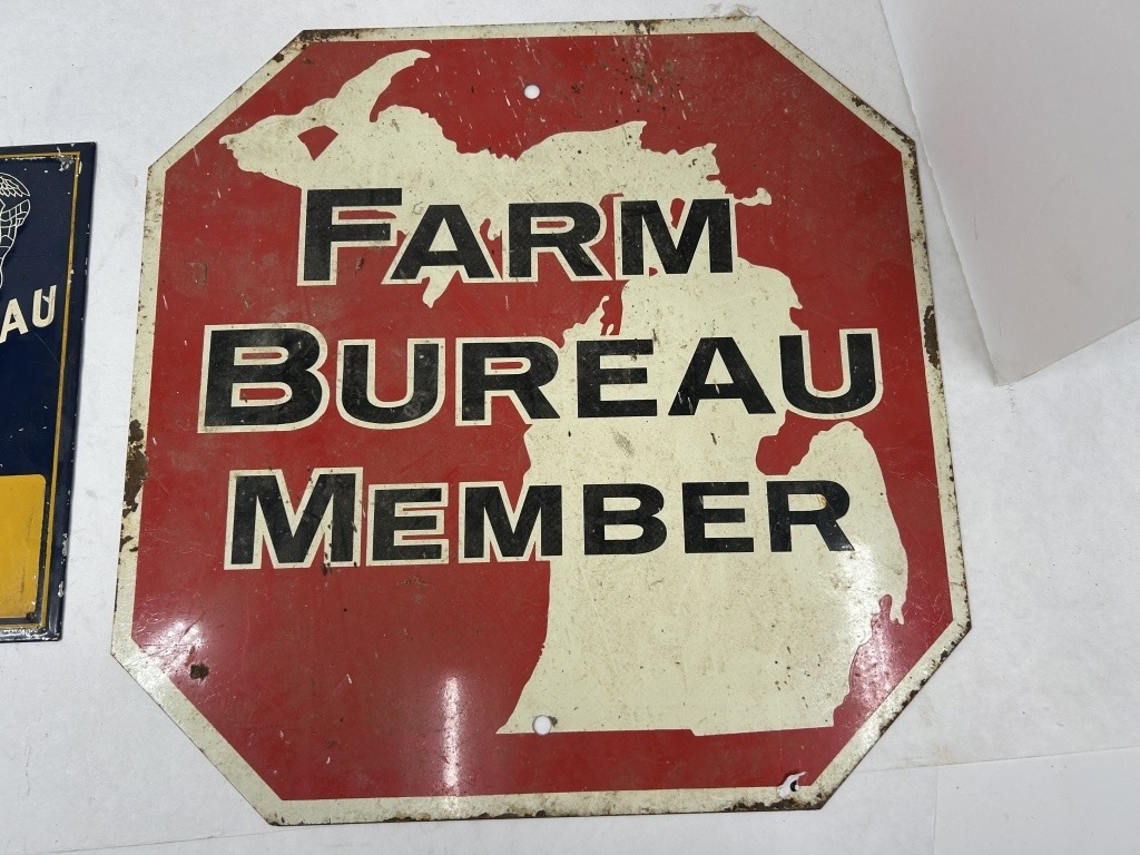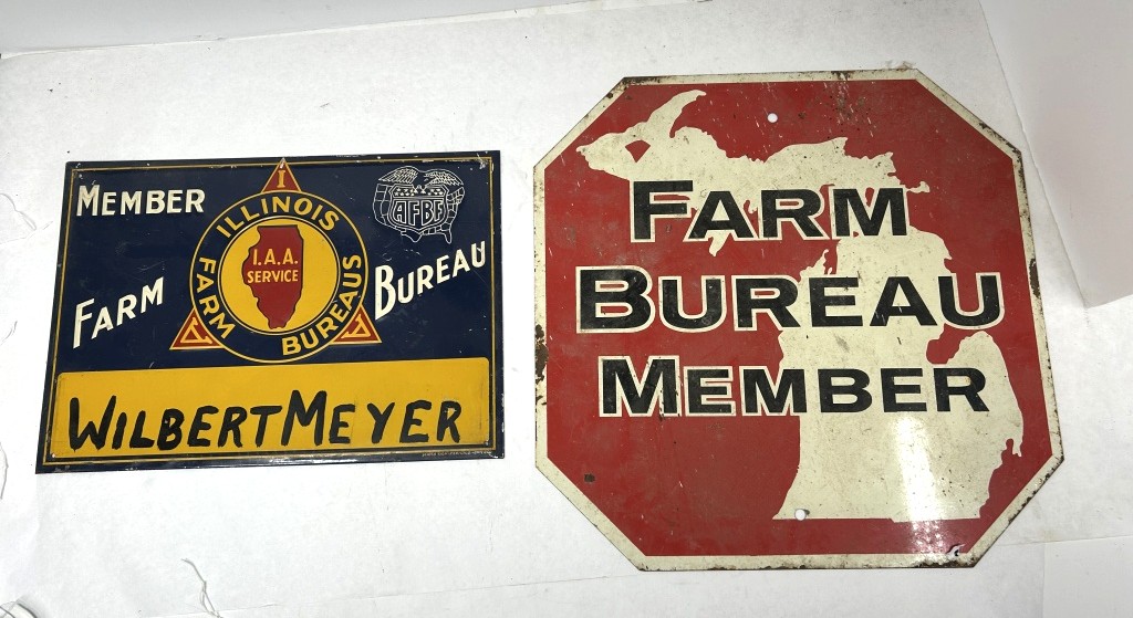 ILLINOIS FARM BUREAU METAL SIGN 13.5″X9.5″ AND METAL FARM BUREAU SIGN 15″X15″