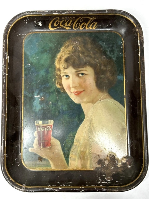 VINTAGE COCO-COLA METAL SERVING TRAY FEATURING “FLAPPER GIRL” 10.5″X13″