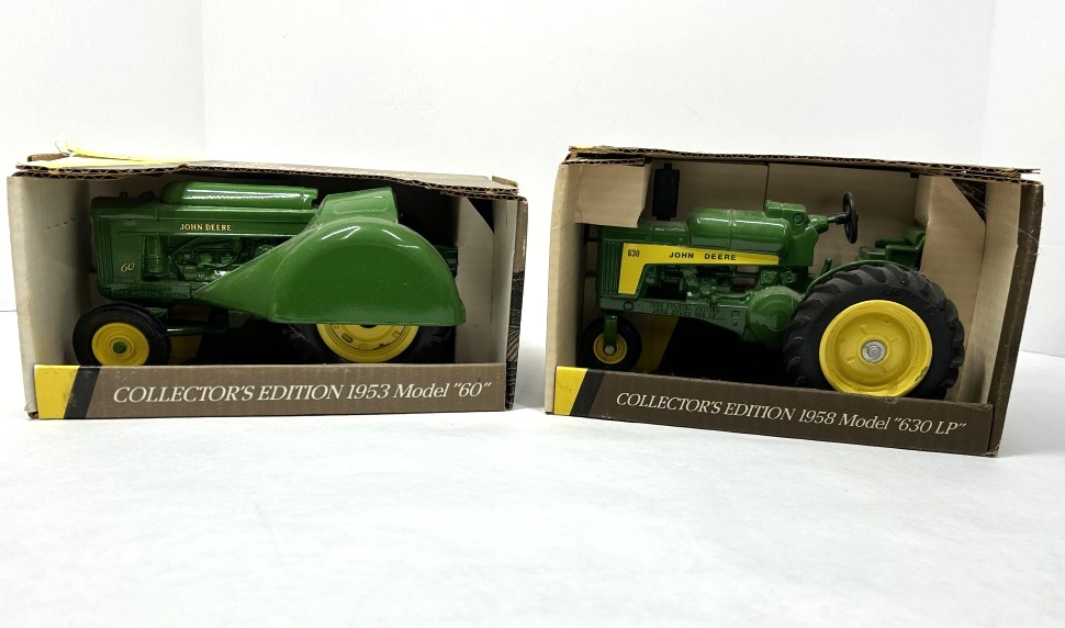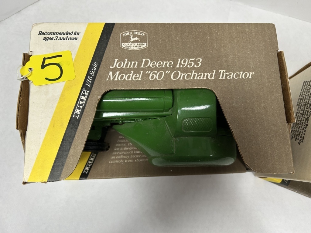 1/16 COLLECTOR’S EDITION 1953 JOHN DEERE MODEL “60” ORCHARD ERTL AND 1/16 1958 JOHN DEERE 630 LP TRACTOR BY ERTL