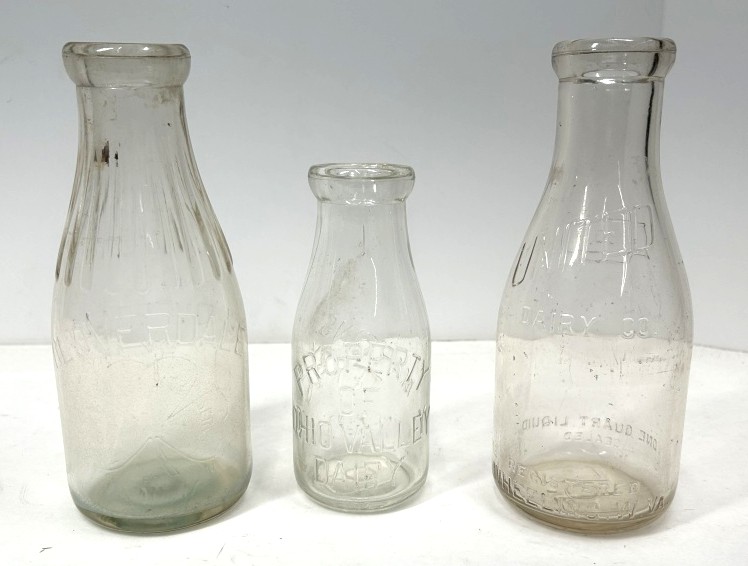 VINTAGE MILK BOTTLES FROMF UNITED DAIRY CO AND OHIO VALLEY DAIRY