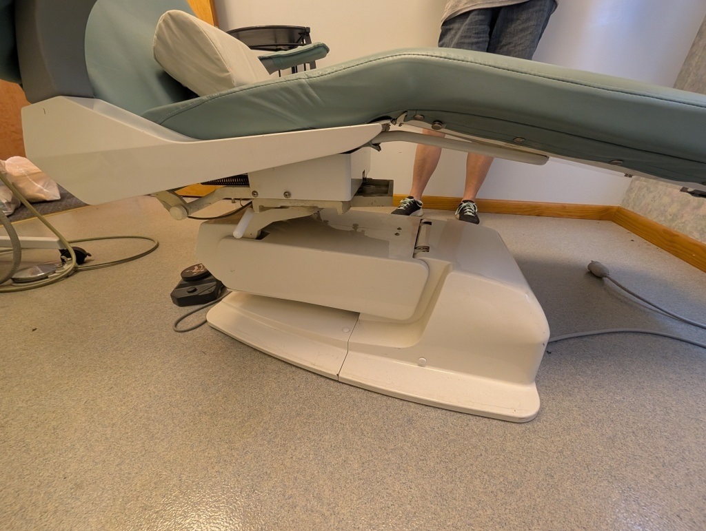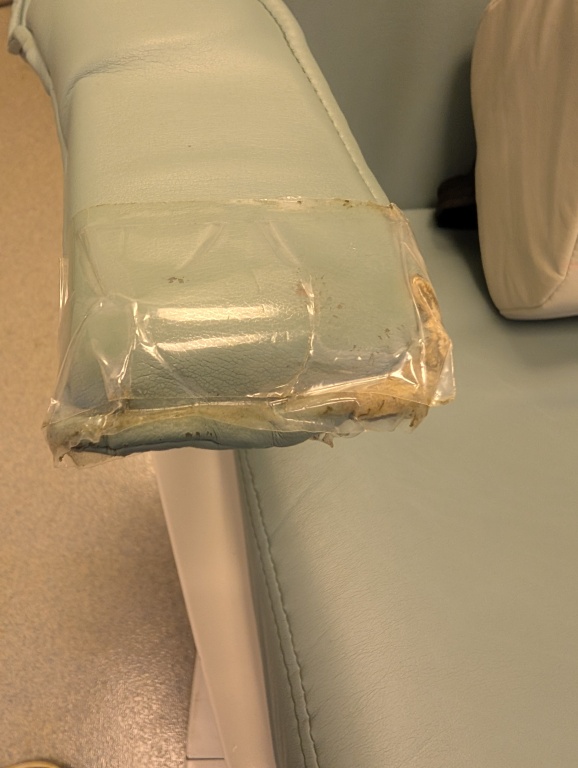 SHOWS WEAR ON RIGHT ARM, WITH EXTRA PILLOW, TURNS ON AND MOVES