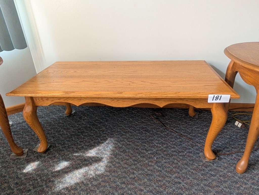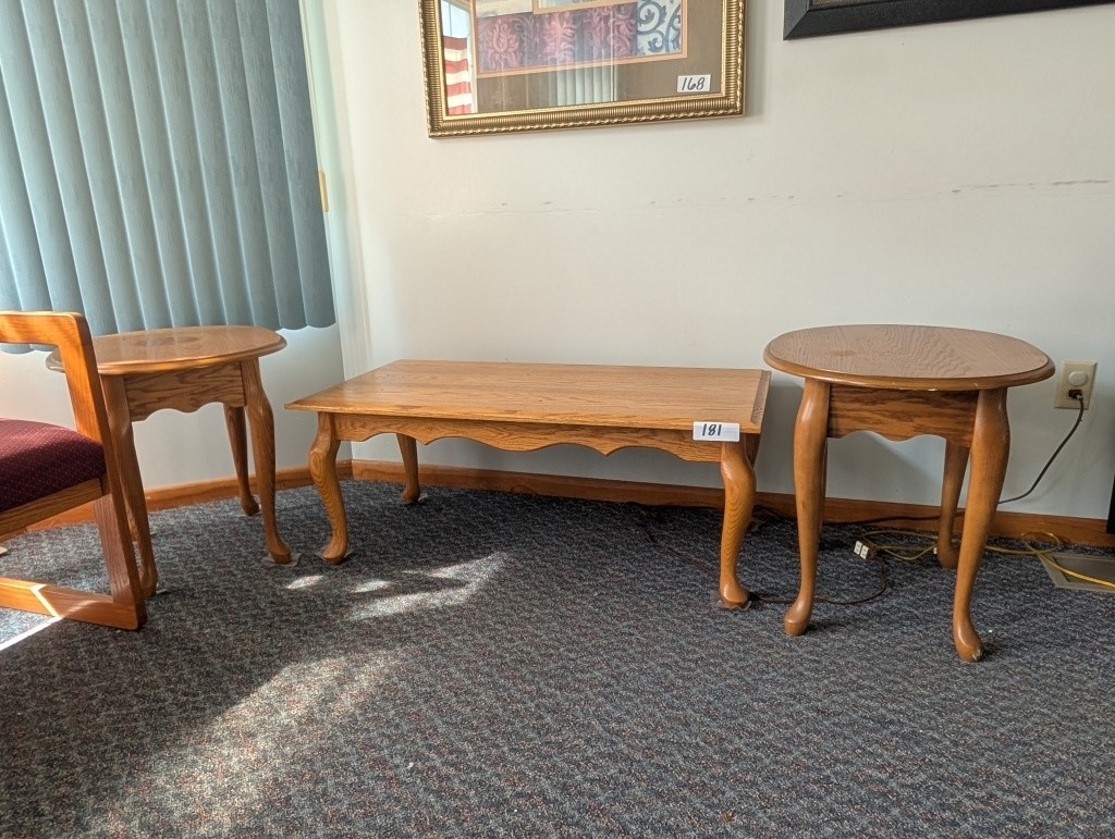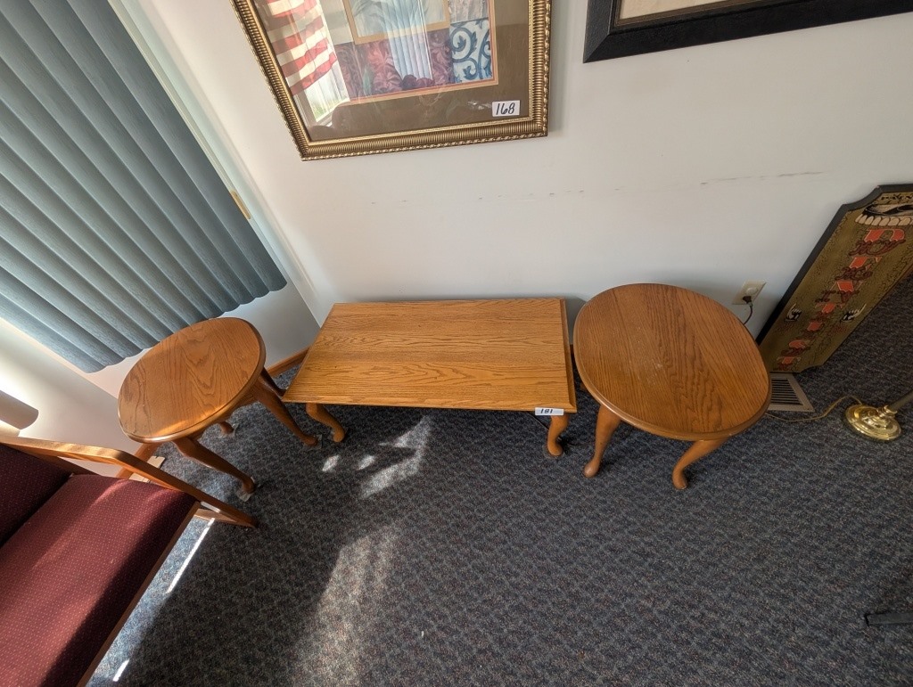 OAK COFFEE TABLE AND 2 END TABLES