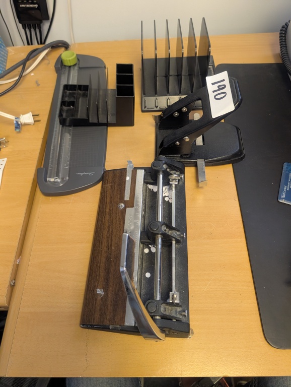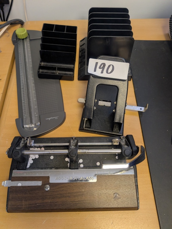 HOLE PUNCHES, PAPER CUTTER, FILE HOLDER AND MISC