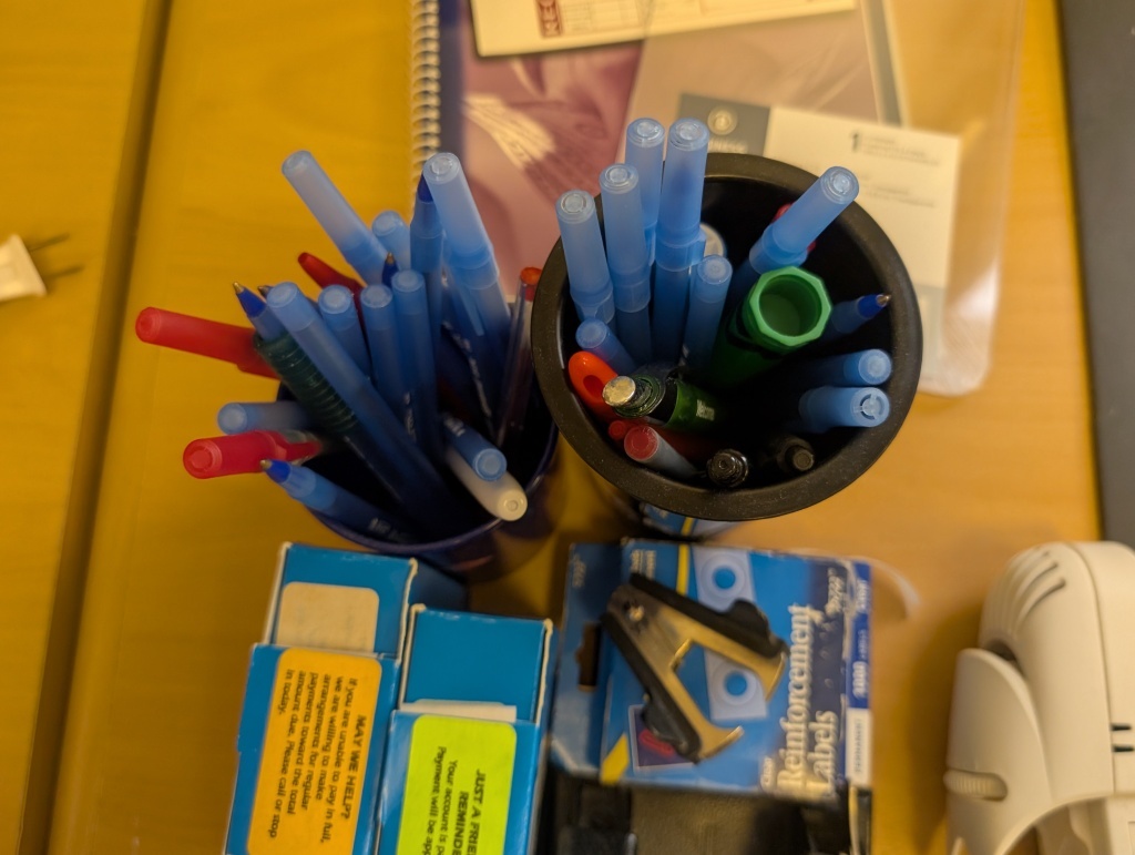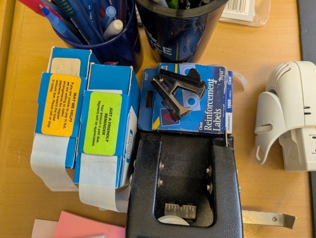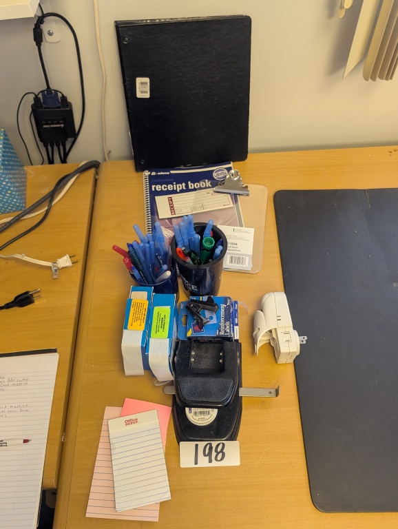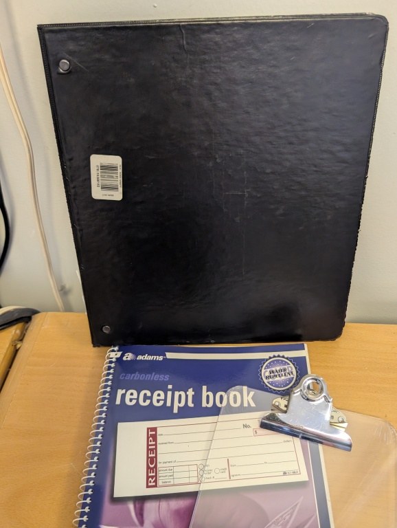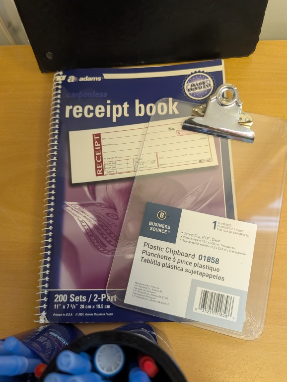 RECEIPT BOOK, PENS, LABELS, AND MISC