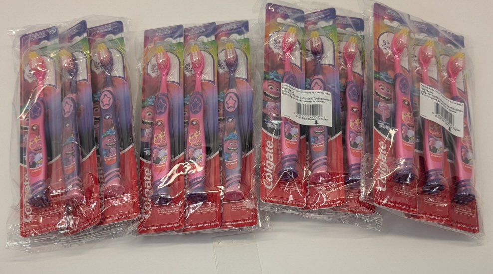 24 COUNT OF EXTRA SOFT BRISTLES TROLLS KIDS TOOTHBRUSH, PINK & PURPLE