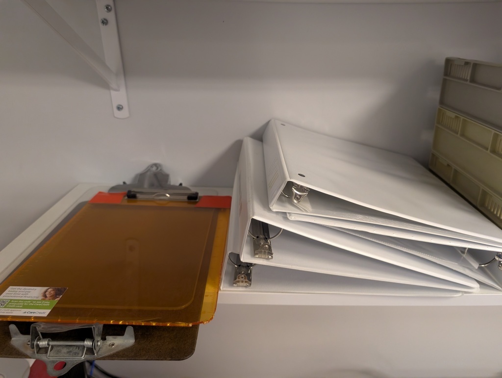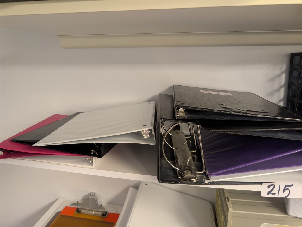 BINDERS, CLIPBOARDS, FILE TRAYS, MISC PAPERS, AND MORE