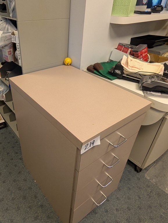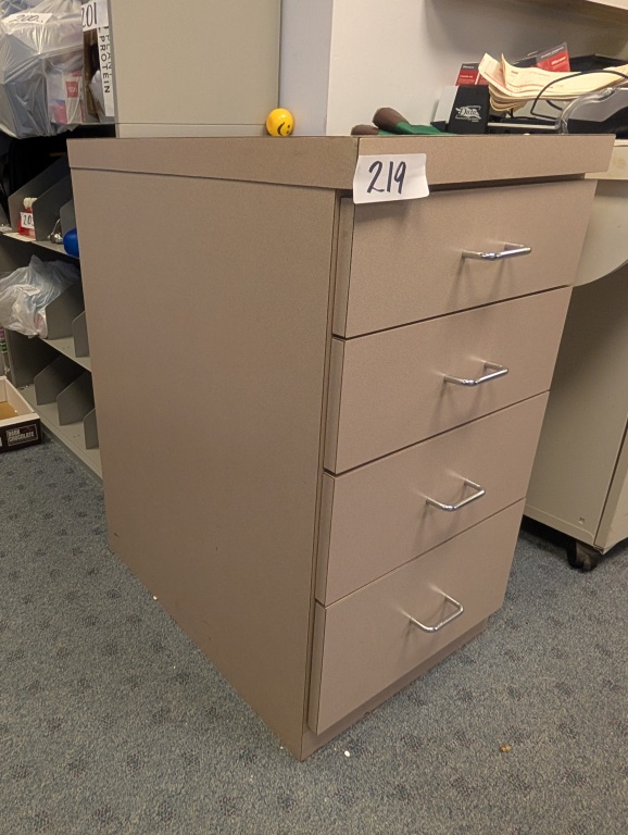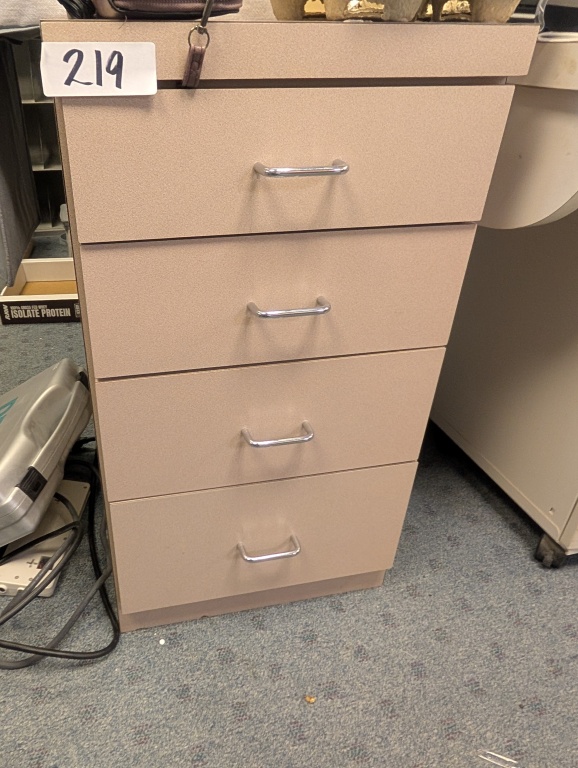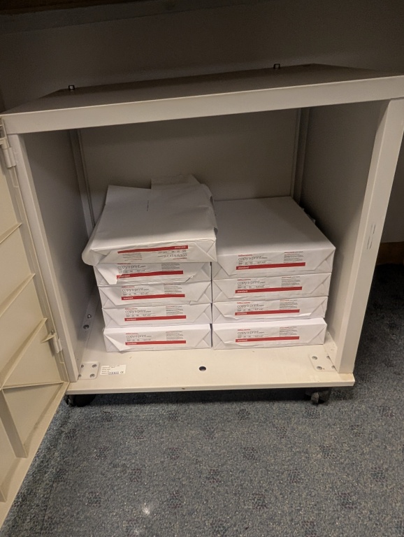 4 DRAWER CABINET AND PLASTIC CABINET ON WHEELS WITH 8 REAMS OF COPY PAPER