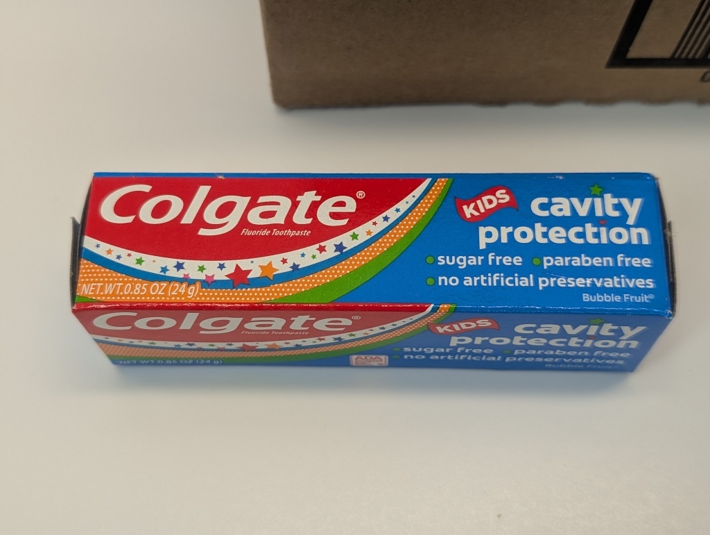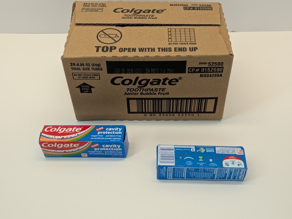 24 COUNT OF COLGATE TOOTHPASTE JUNIOR BUBBLE FRUIT, TRIAL SIZE TUBES, EXP. 5/2024