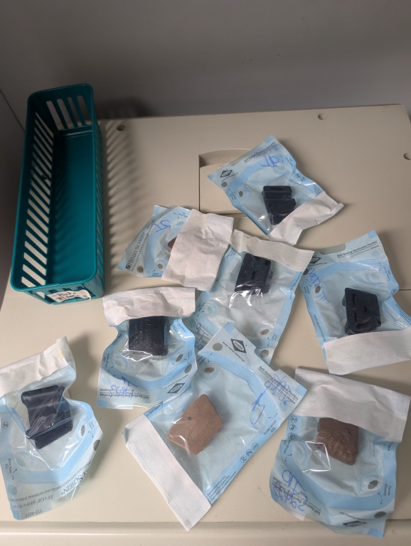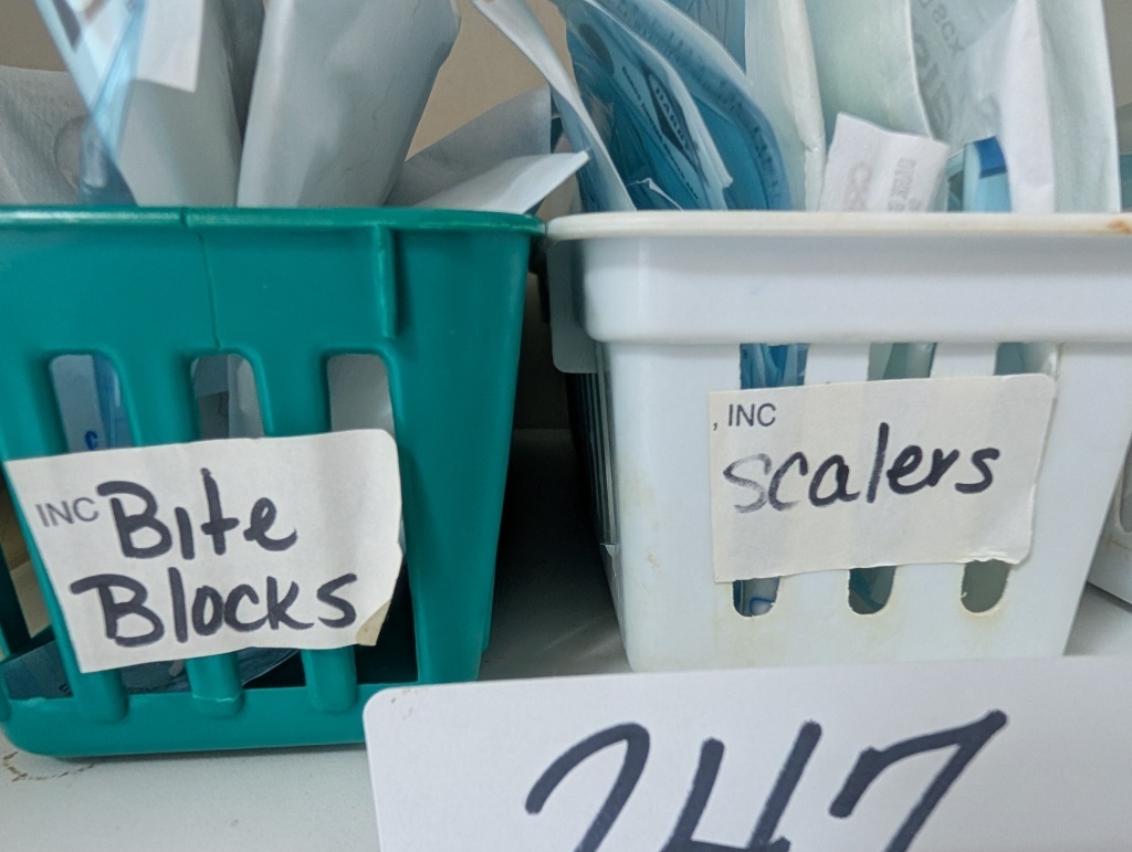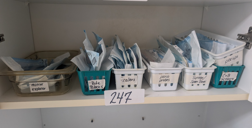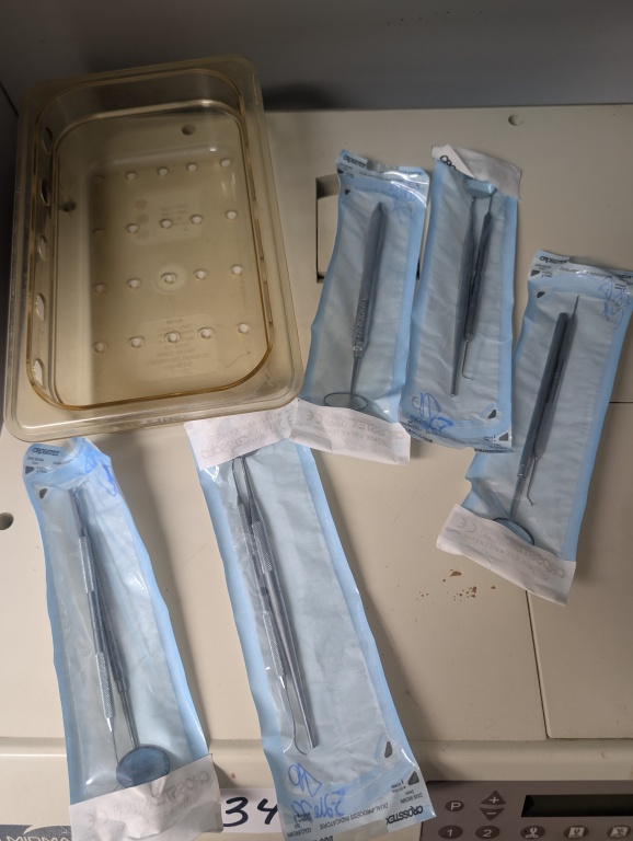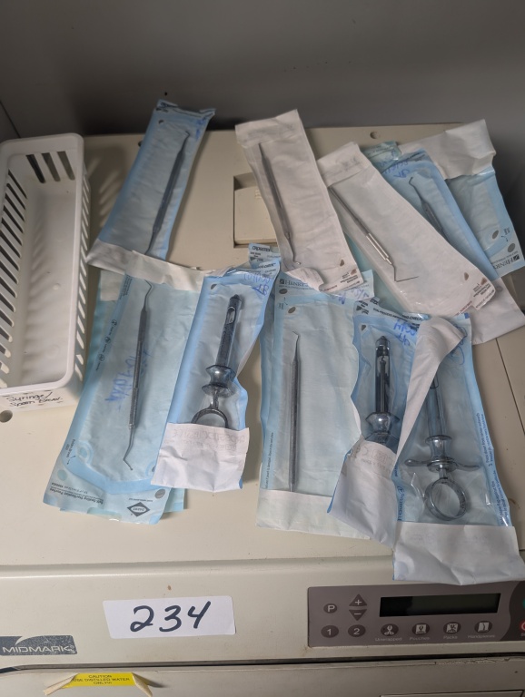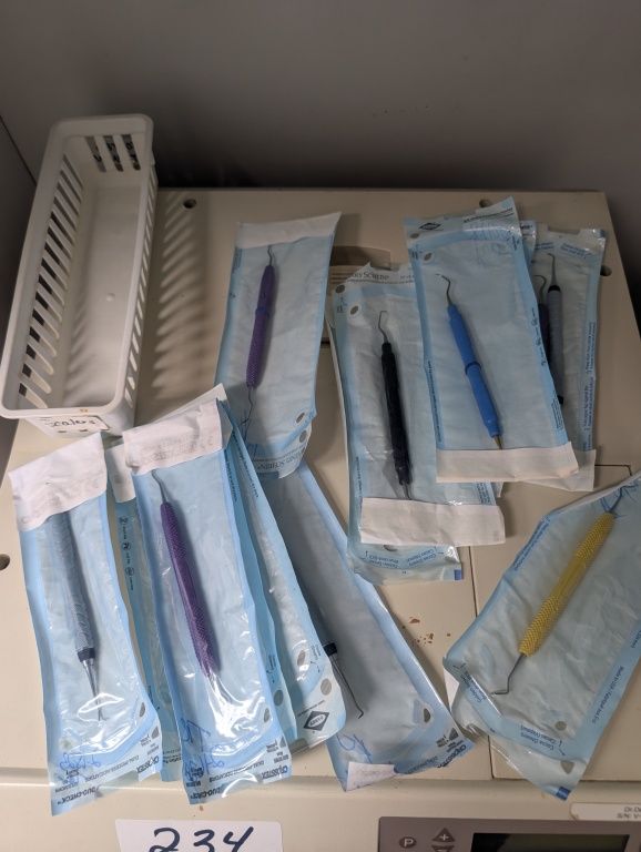 MIRROR AND EXPLORERS, BITE BLOCKS, SCALERS, PERIO PROBES, SYRINGE/SPOON EXCAV., PICK UPS, C & B SCISSORS AND MORE APPROX 40 PLUS PIECES