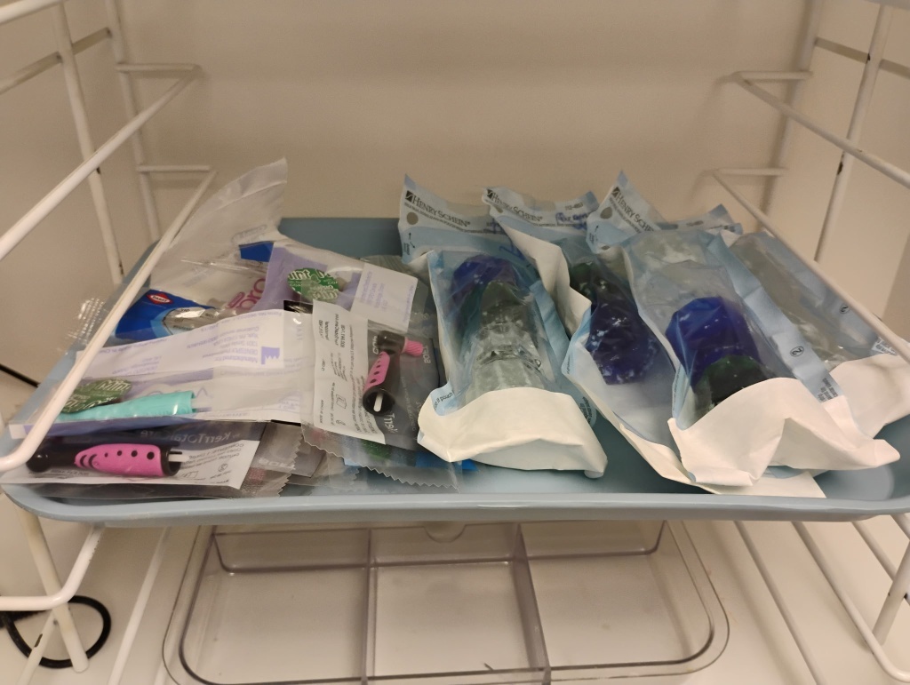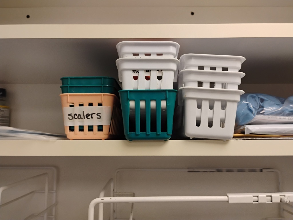 BASKETS, SEALER, TRAYS OF MISC ITEMS, TOPEX,
