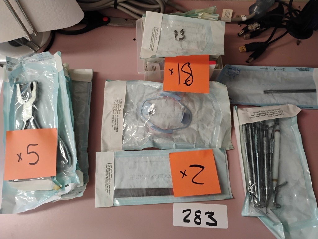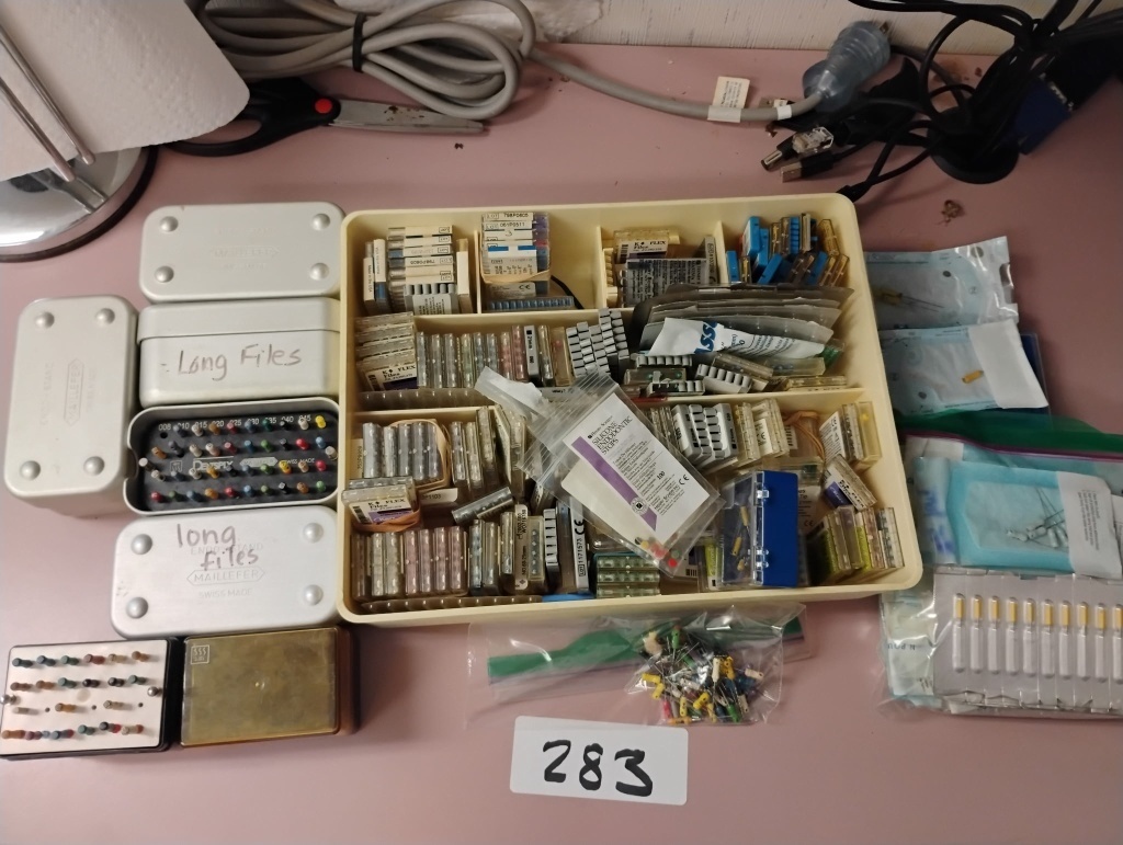 HANDPIECES WITH QUANTITIES IN PICTURES, DENTAL DAM, TRAY FILLED WITH LARGE VARITY OF FILES