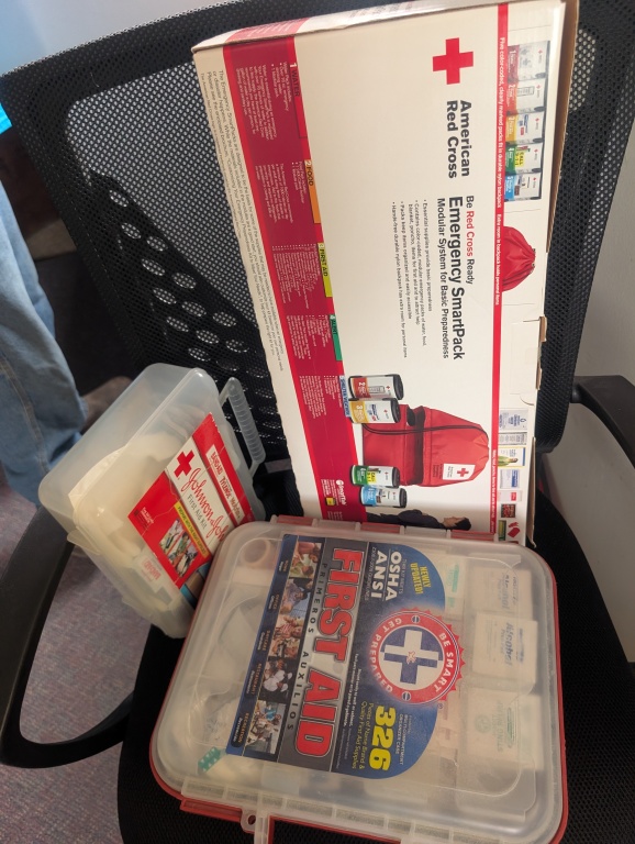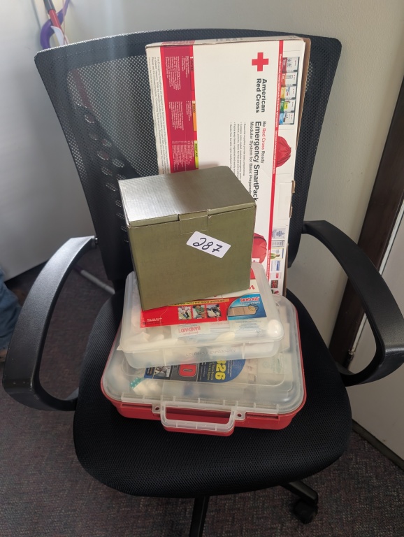 OFFICE CHAIR, FIRST AID KITS & FLOOR CARE ITEMS