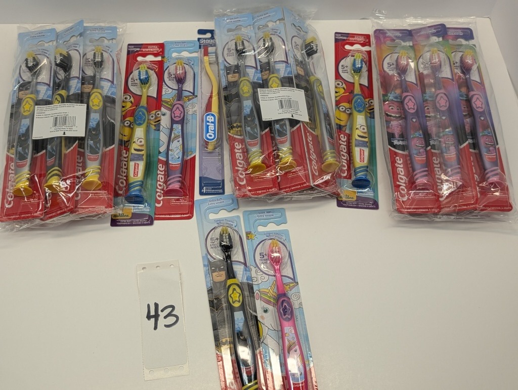 24 COUNT OF ASSORTED KIDS TOOTHBRUSHES COLGATE