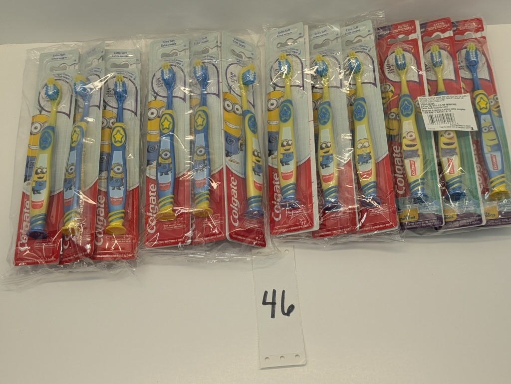 24 COUNT OF MINION COLGATE TOOTHBRUSHES, EXTRA SOFT, AGES 5+