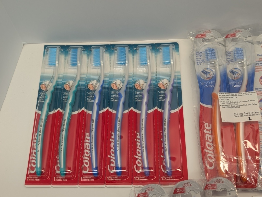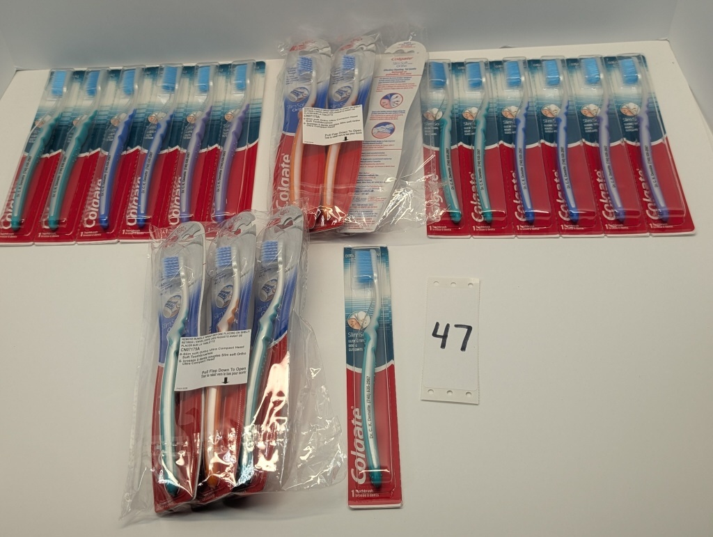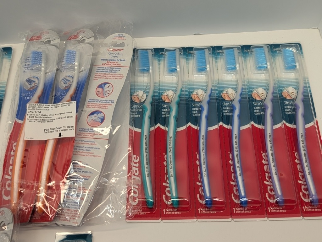 24 COUNT SLIM SOFT ADULT COLGATE TOOTHBRUSHES ASSORTED COLORS