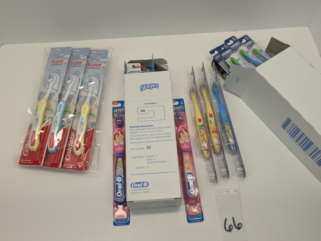 24 COUNT OF ASSORTED TOOTHBRUSHES KIDS AGES 0-7