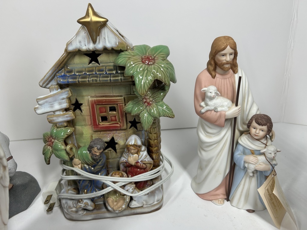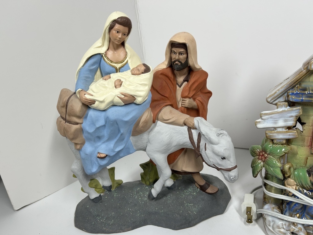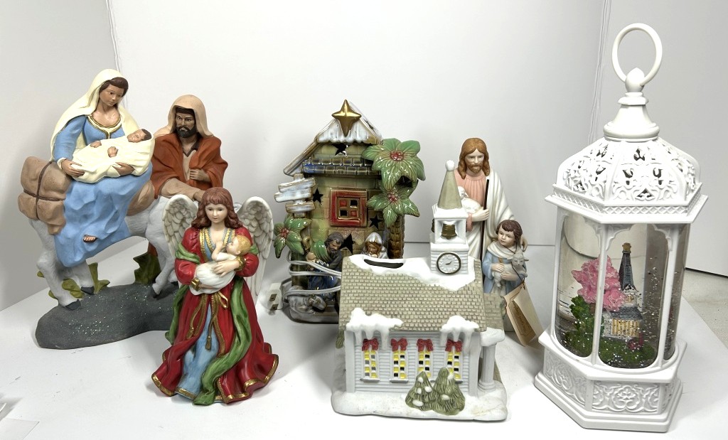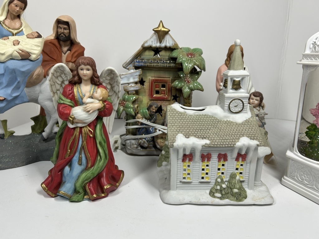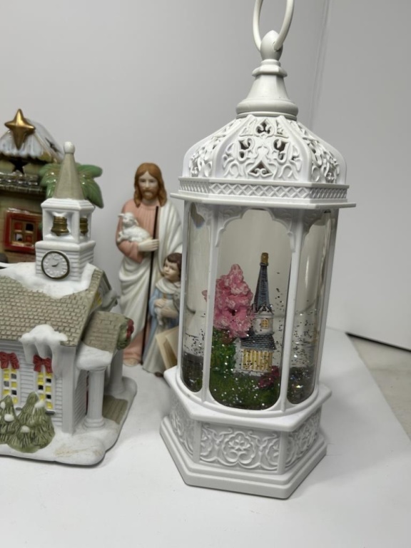 GLOBE, LIGHTED MANGER SCENE, VILLAGE