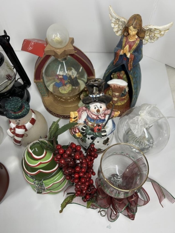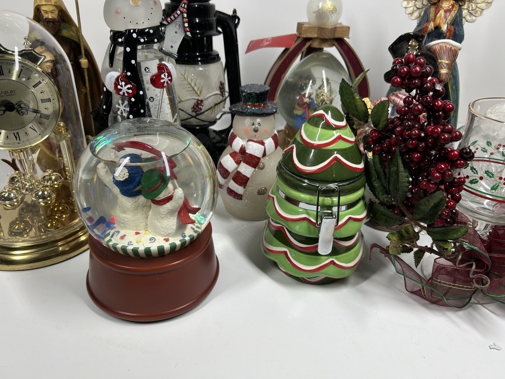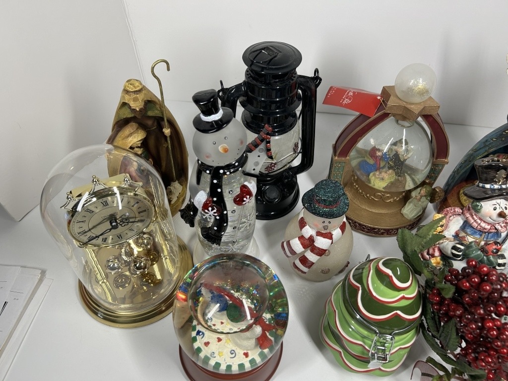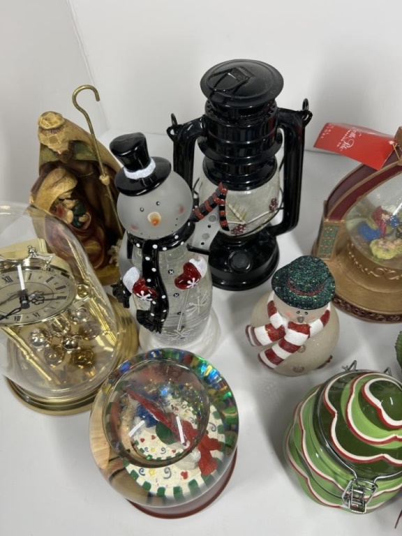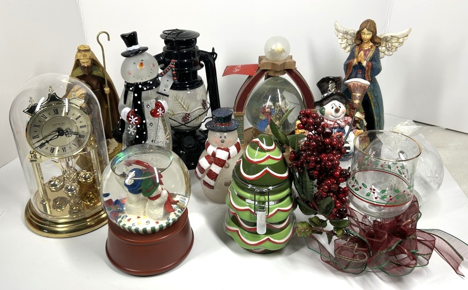 MANY GLOBES, CLOCK, LANTERN, SNOWMEN, AND CHRISTMAS TREE COOKIE JAR