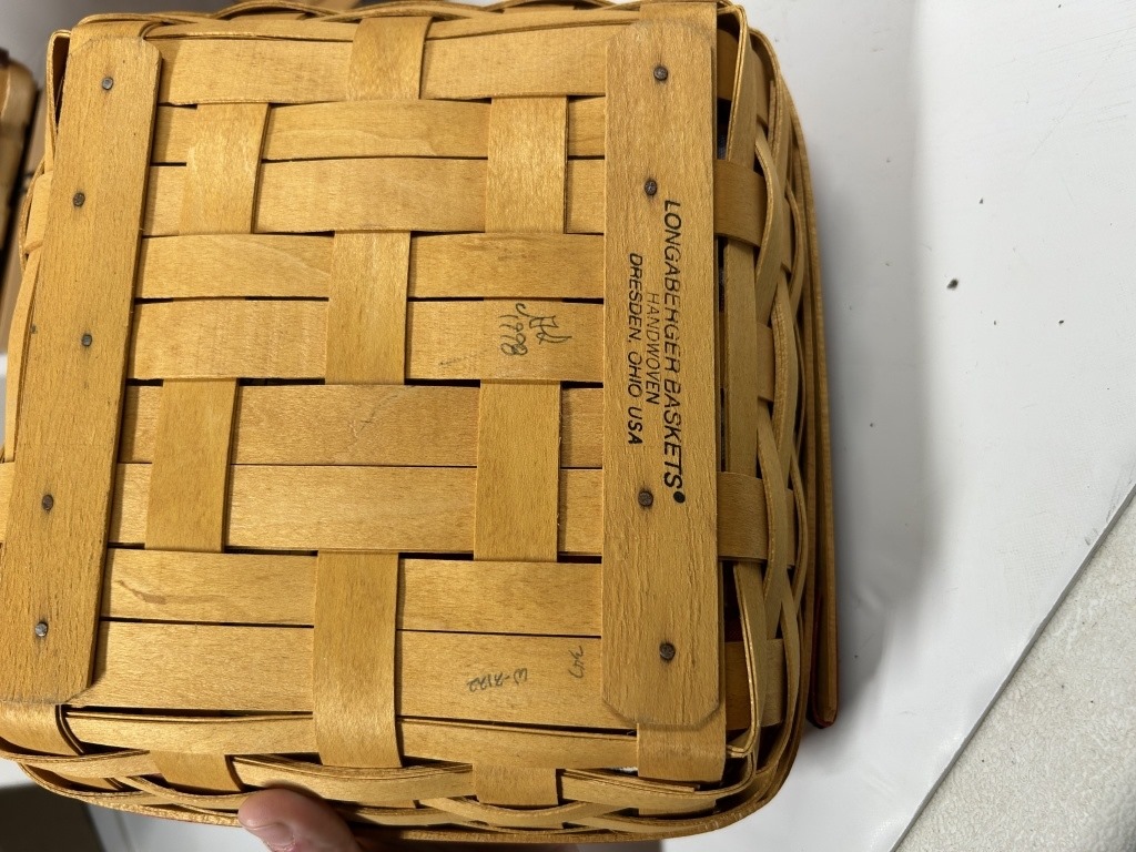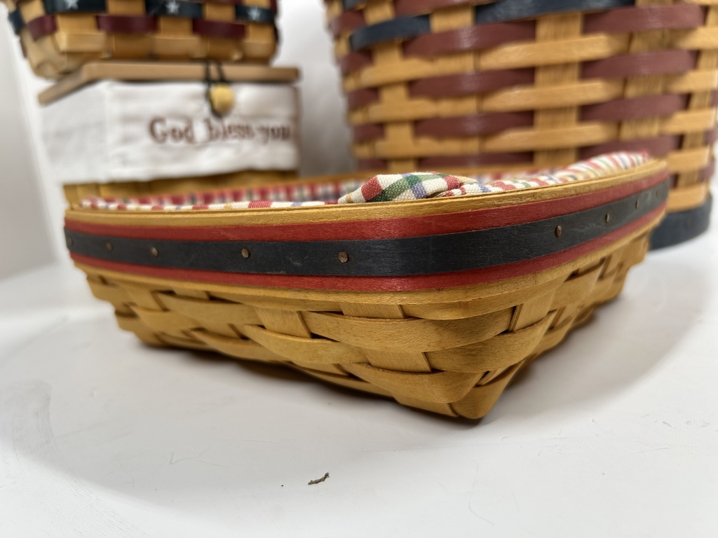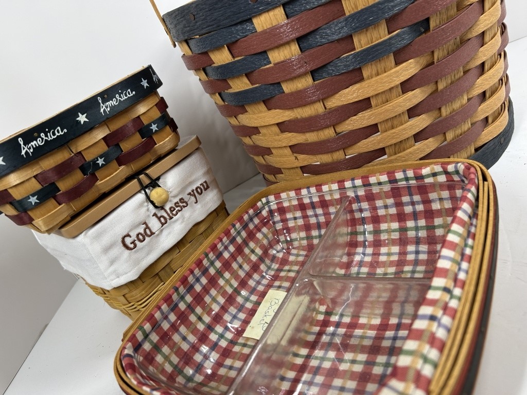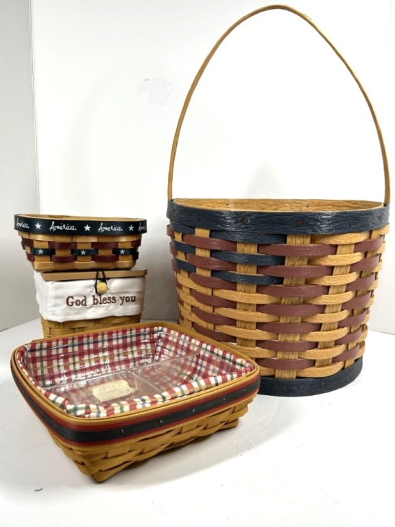 1998 LONGABERGER SERVING TRAY WITH PLASTIC, 3 OTHER BASKETS