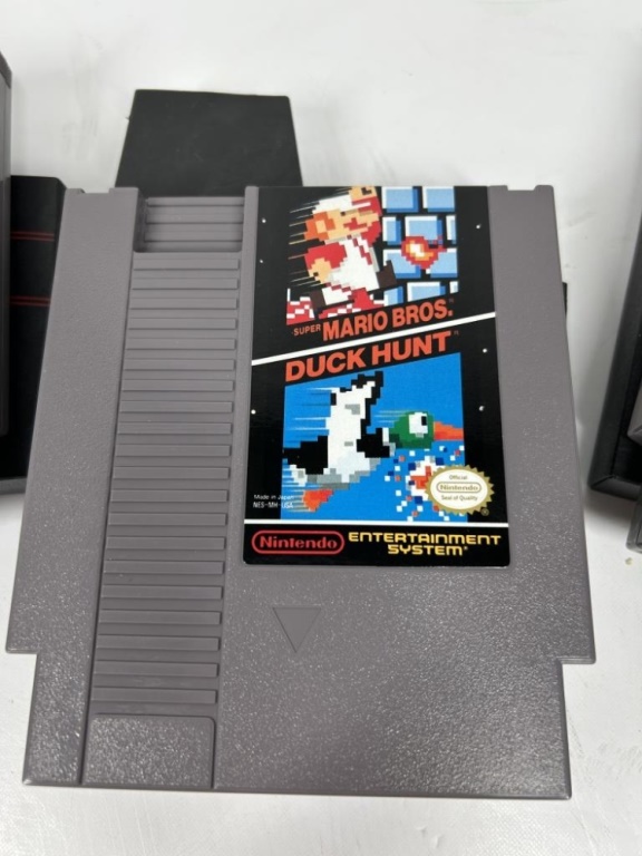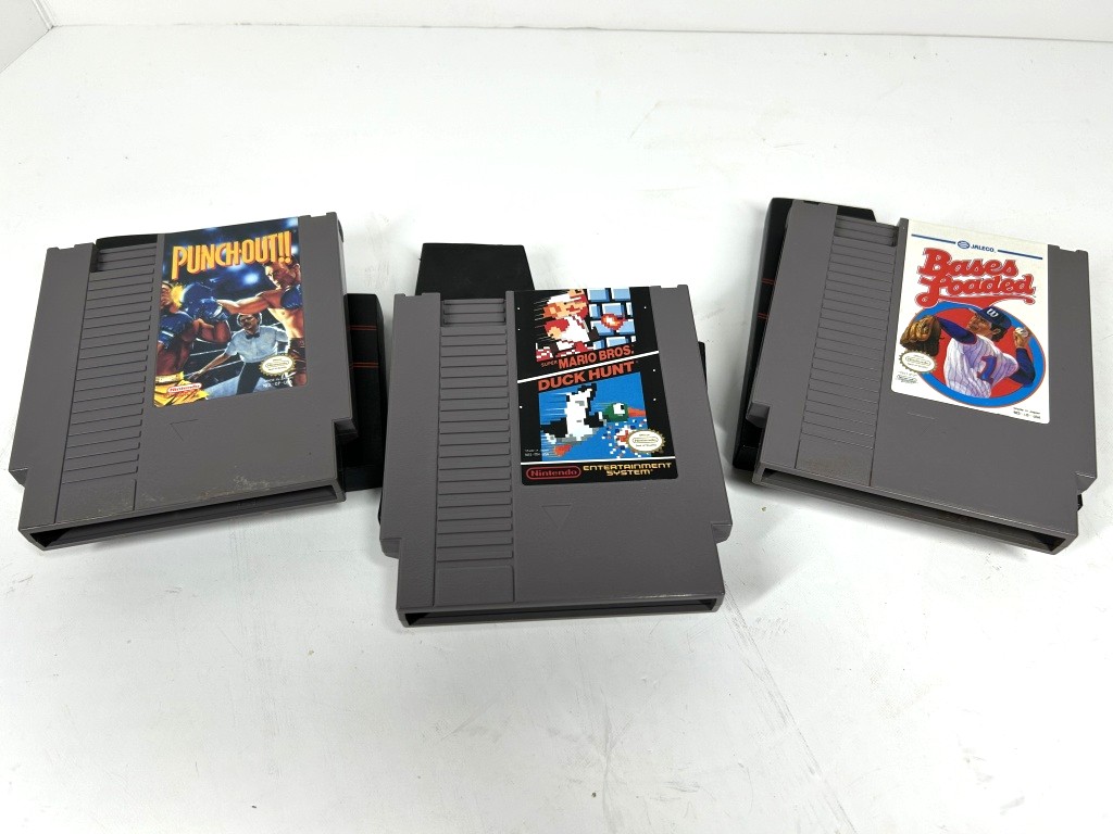 GAMES INCLUDE MARIO BROTHERS DUCK HUNT, PUNCH OUT AND BASES LOADED, BOXES INCLUDED