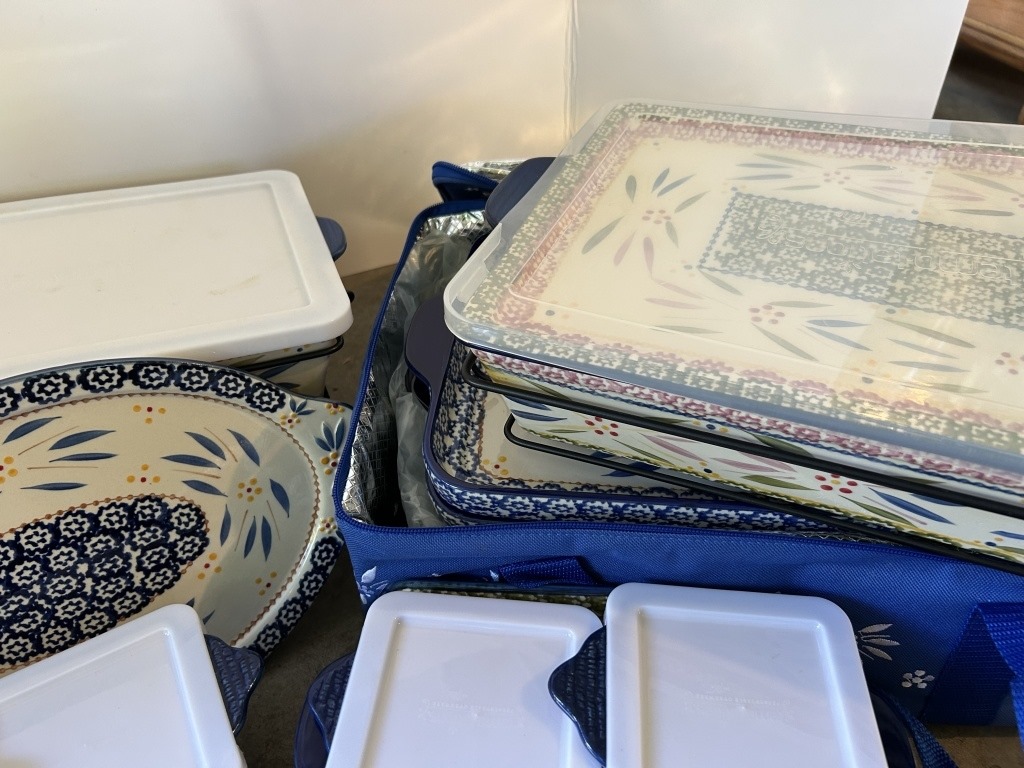 LOADED LOT OF TEMPTATIONS OVENWARE INCLUDES CASSEROLE DISHES, SERVING PLATTERS AND MORE