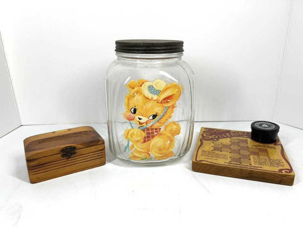 CANISTER, WOODEN SOLITAIRE,TRINKET BOX