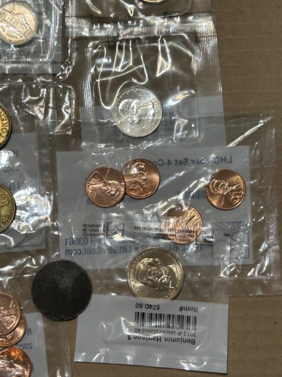 8 COIN LHC ANNIVERSARY SET, BENJAMIN HARRISON, LHC YEAR SET 4, KENNEDY HALF DOLLAR SET, JEFFERSON NICKLE, AK DENALI NP, SACAGAWEA DOLLAR, PARKING TOKENS, WORN SILVER HALF, ALL UNCIRCULATED
