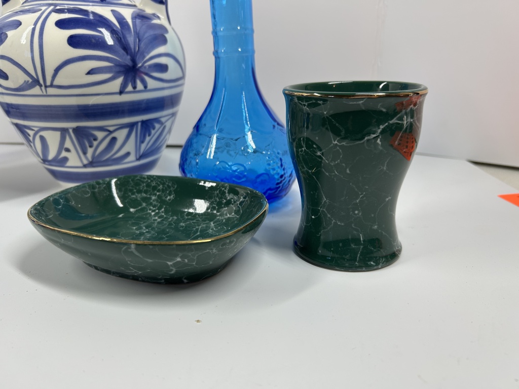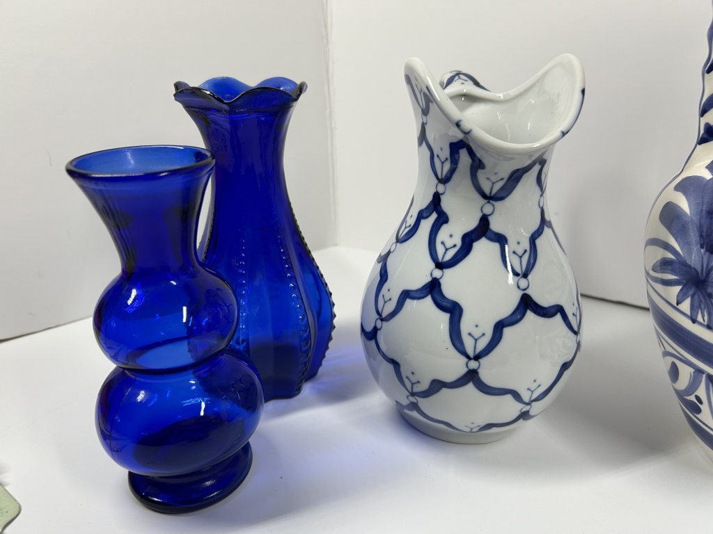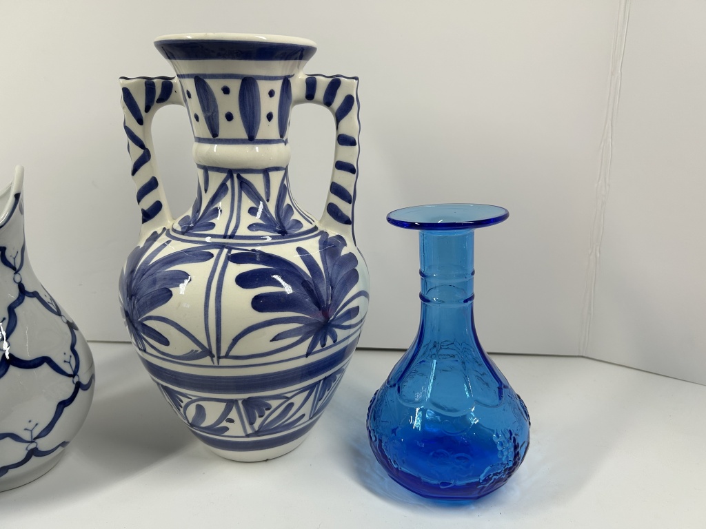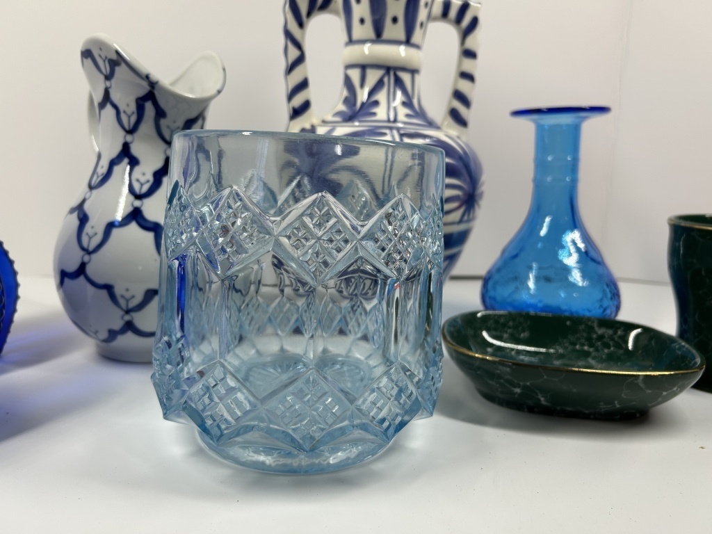 MEXICAN FLORAL VASE, ICE BLUE CARNIVAL GLASS,