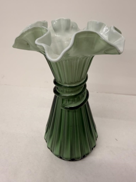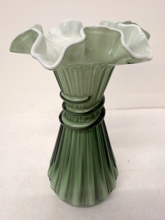 FENTON WHEAT GREEN GLASS VASE