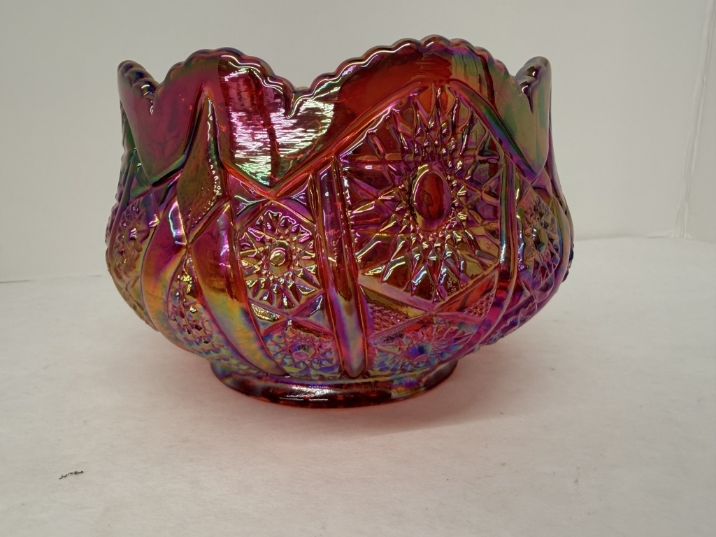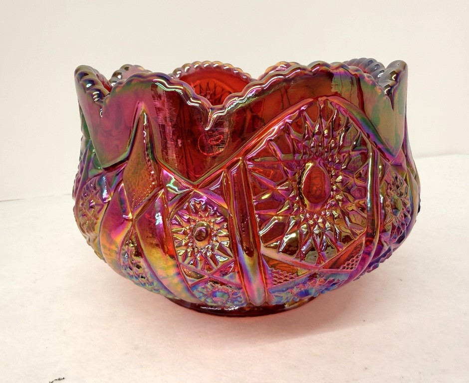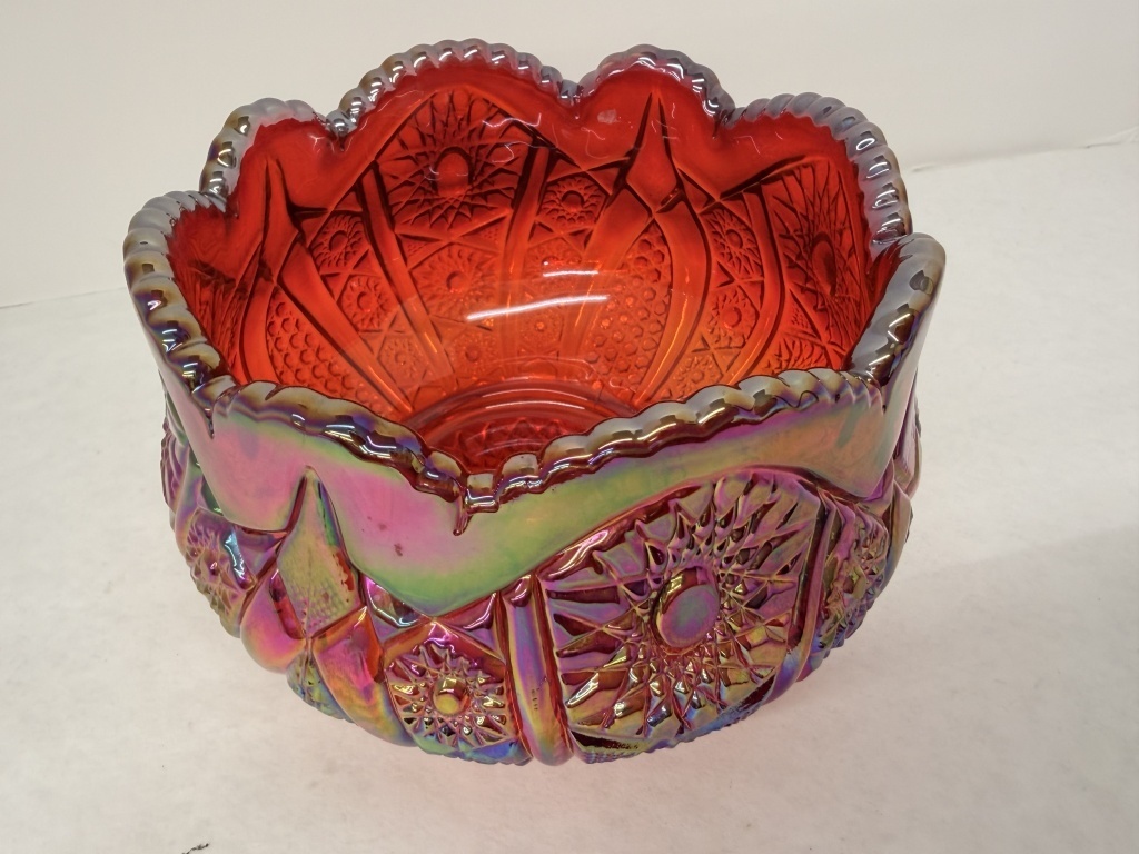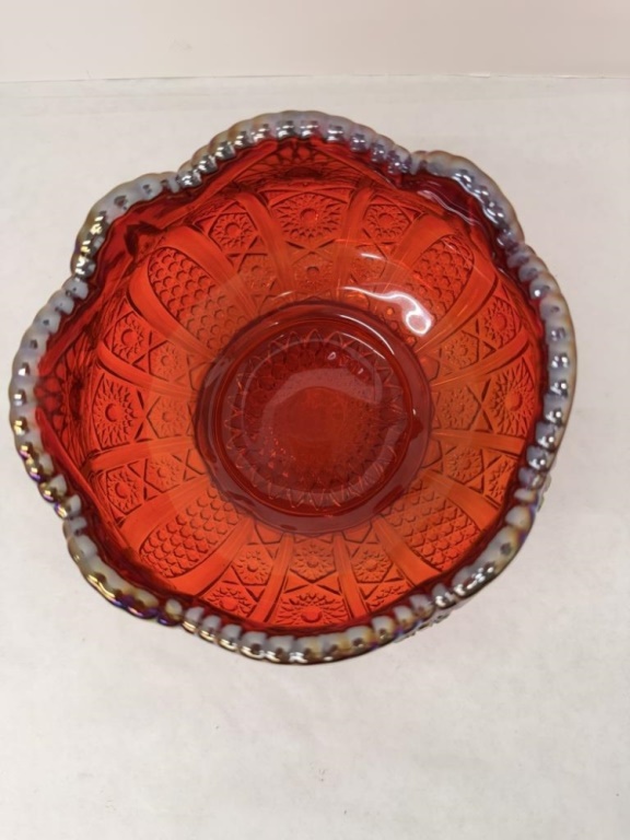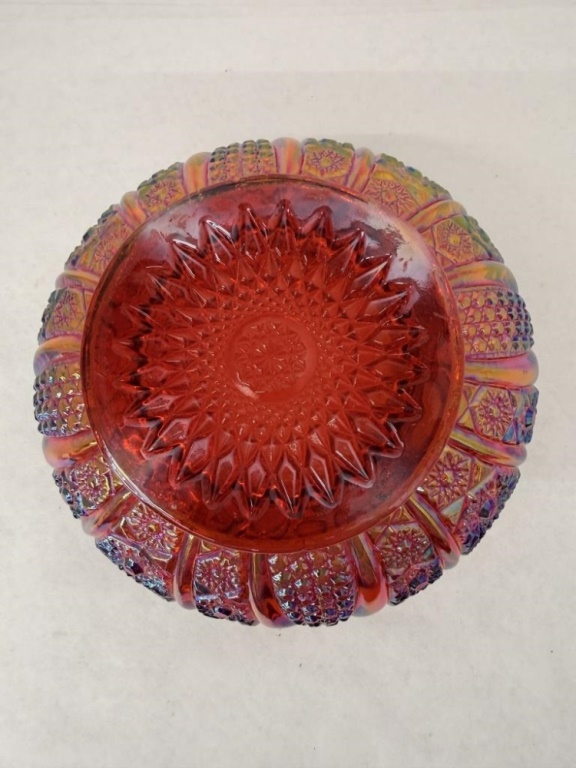 INDIANA GLASS CO IRRIDESCENT SUNSET RUBY RED CARNIVAL GLASS BOWL