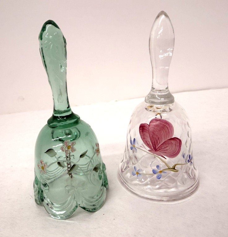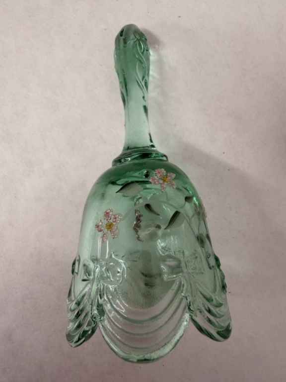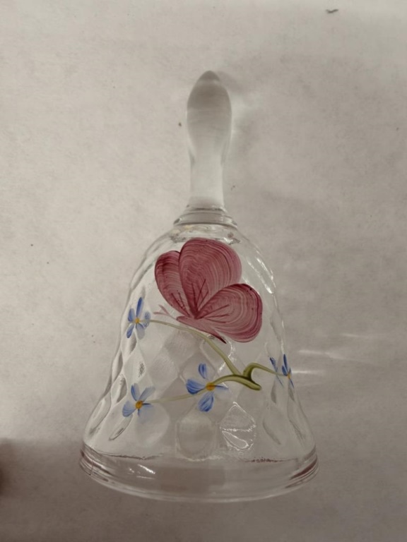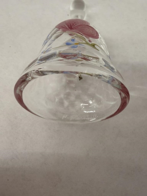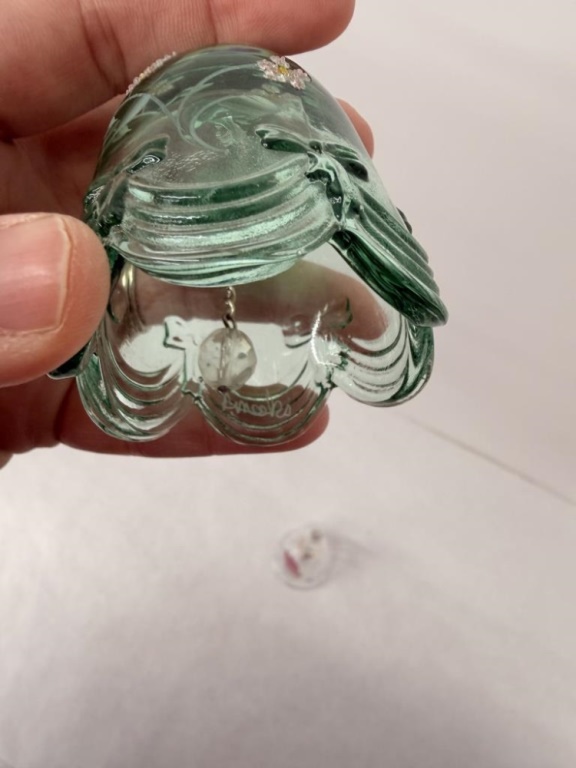 4.5″ GREEN GLASS HAND PAINTED AND CRYSTAL GLASS W/ HANDPAINTED BUTTERLY – BOTH SIGNED