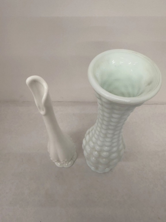 (2) VASES WHITE MILK GLASS