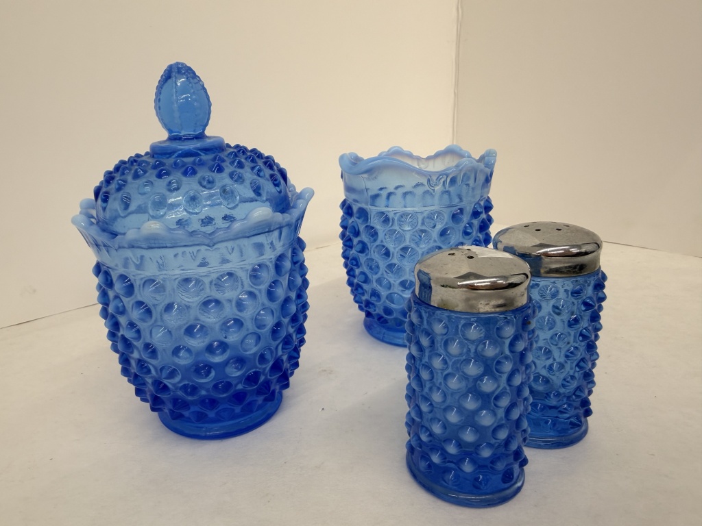 SALT AND PEPPER SHAKER, LIDDED DISH, AND CUP