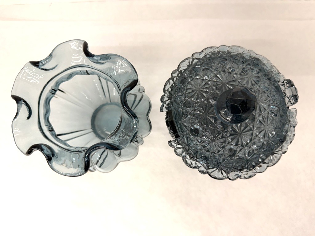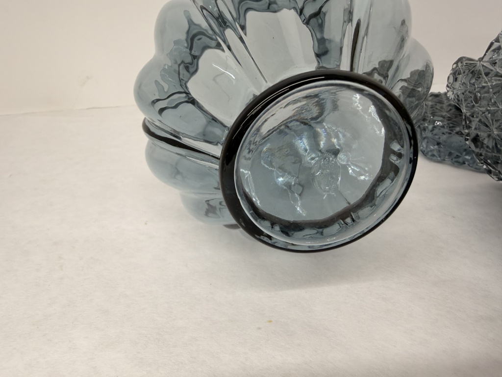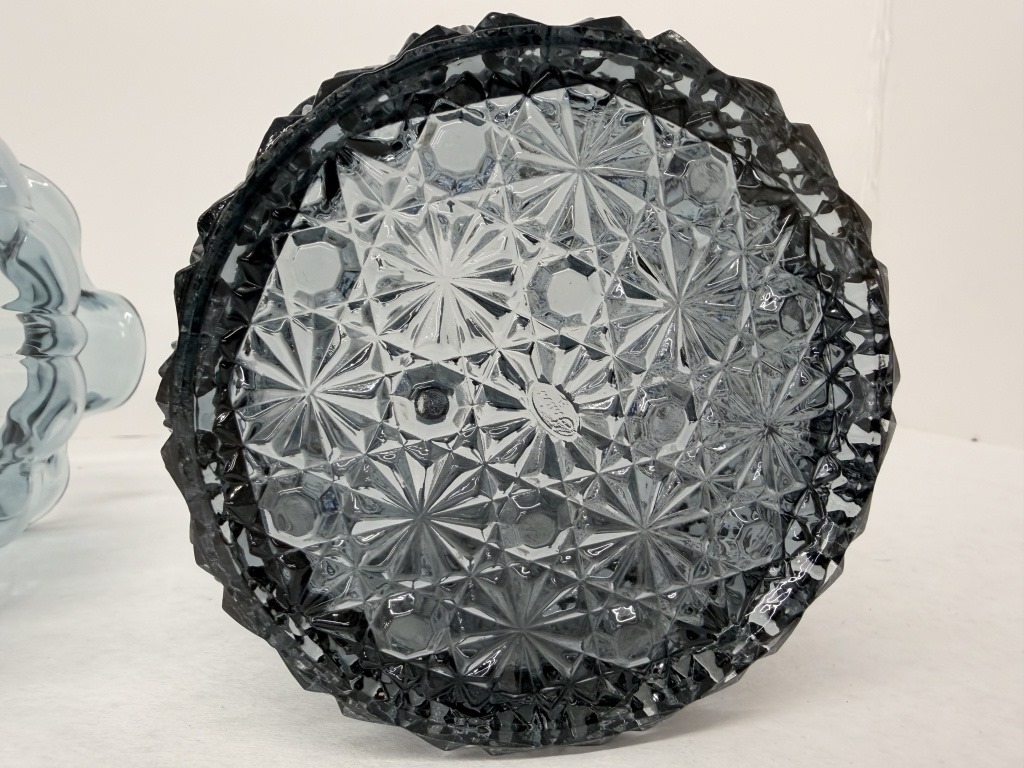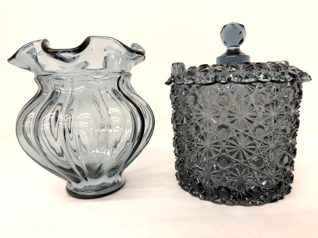 FENTON DAISY & BUTTON ART GLASS ICE BUCKET AND FENTON BLUE VASE – BUCKET STAMPED