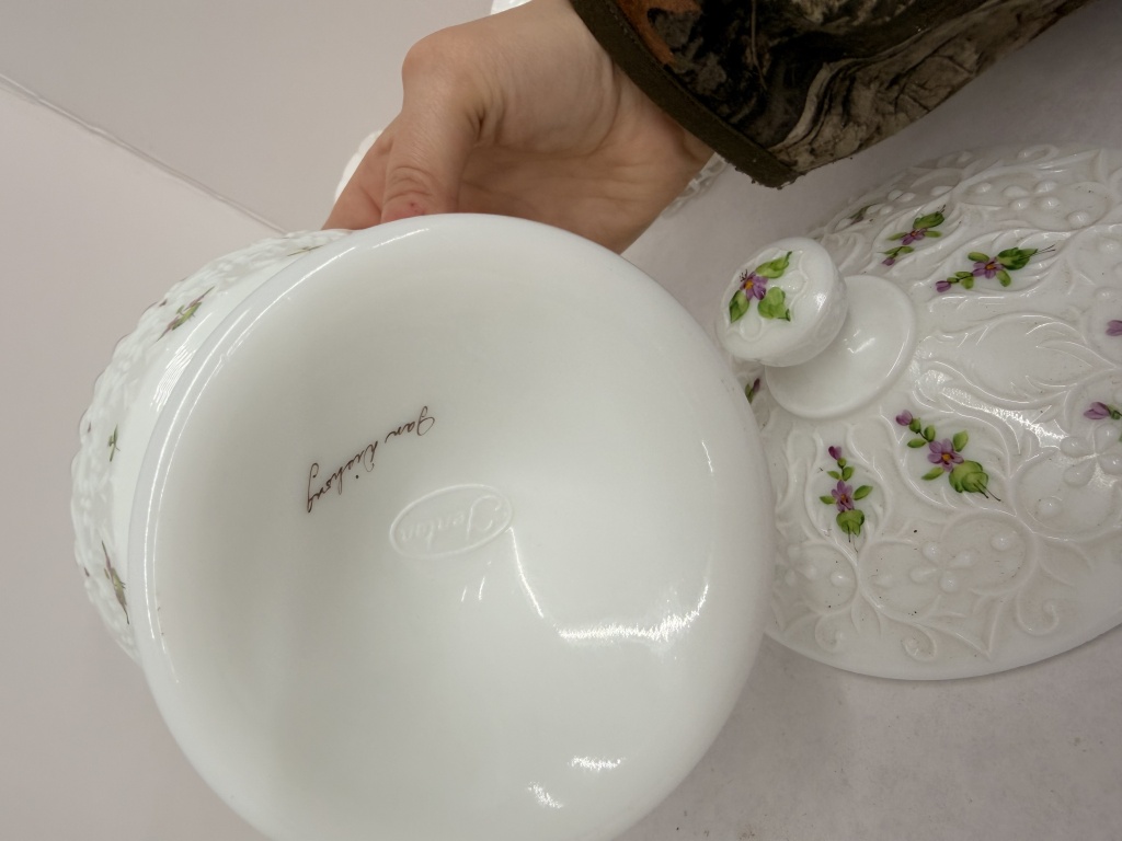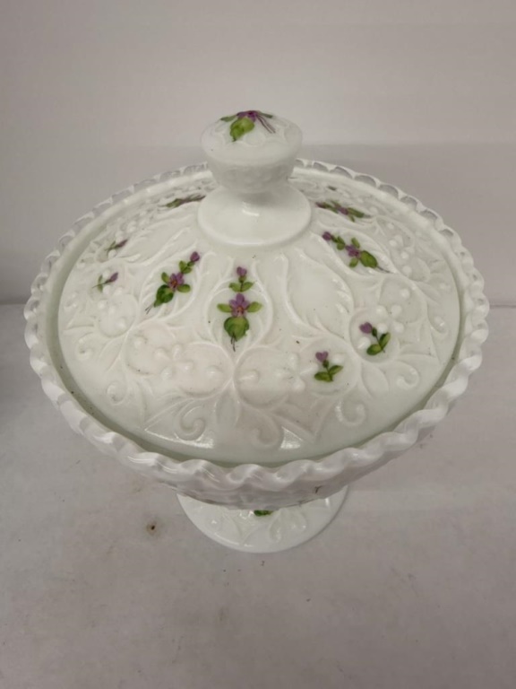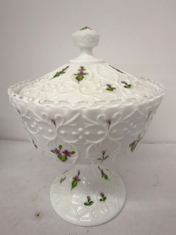 FOOTED COVERED CANDY DISH, ARTIST SIGNED