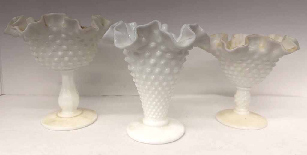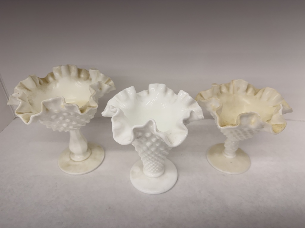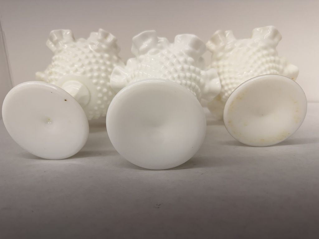 (3) FENTON HOBNAIL MILK GLASS VASES