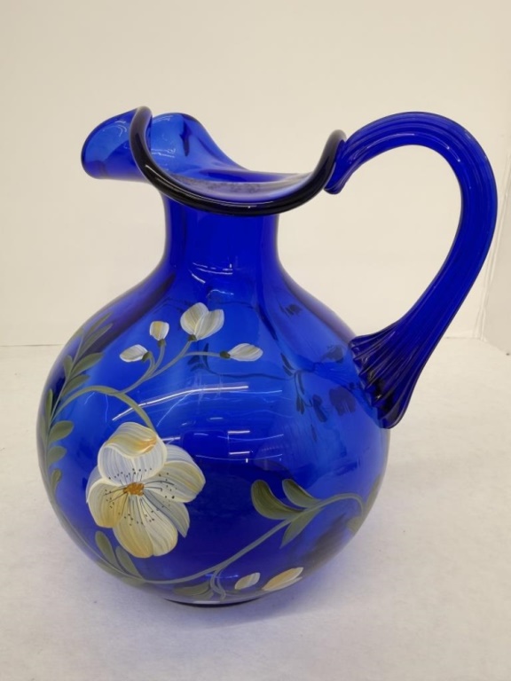 FENTON SIGNED COBALT BLUE PITCHER