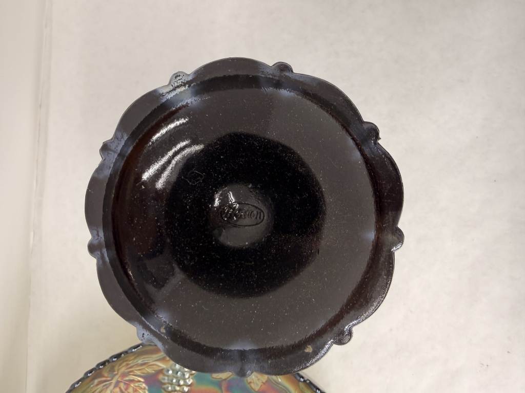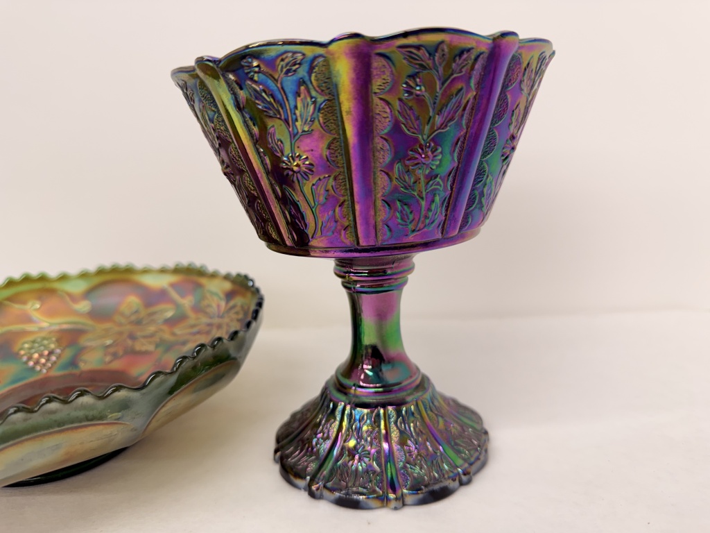 FENTON BLACK AMETHYST CARNIVAL GLASS PEDESTAL COMPOTE
