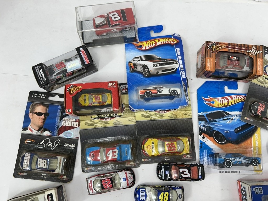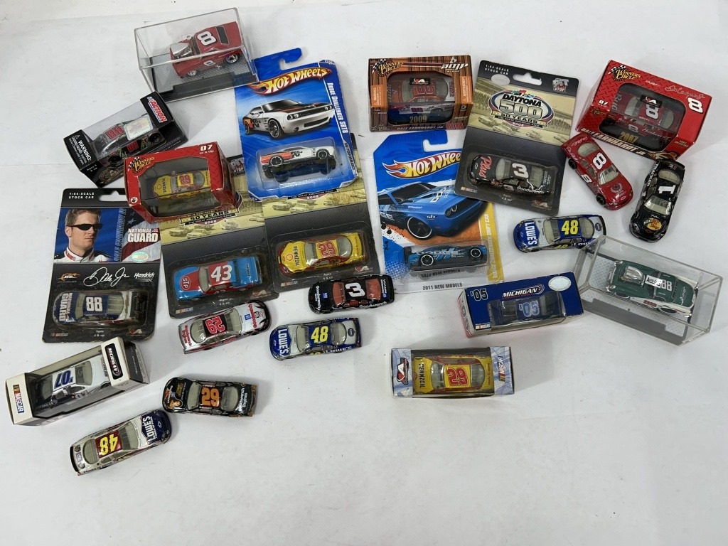 LOADED LOT OF 1/64 DIECAST NASCAR AND HOT WHEELS CARS