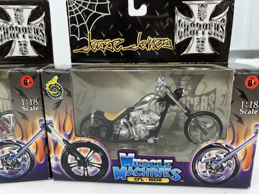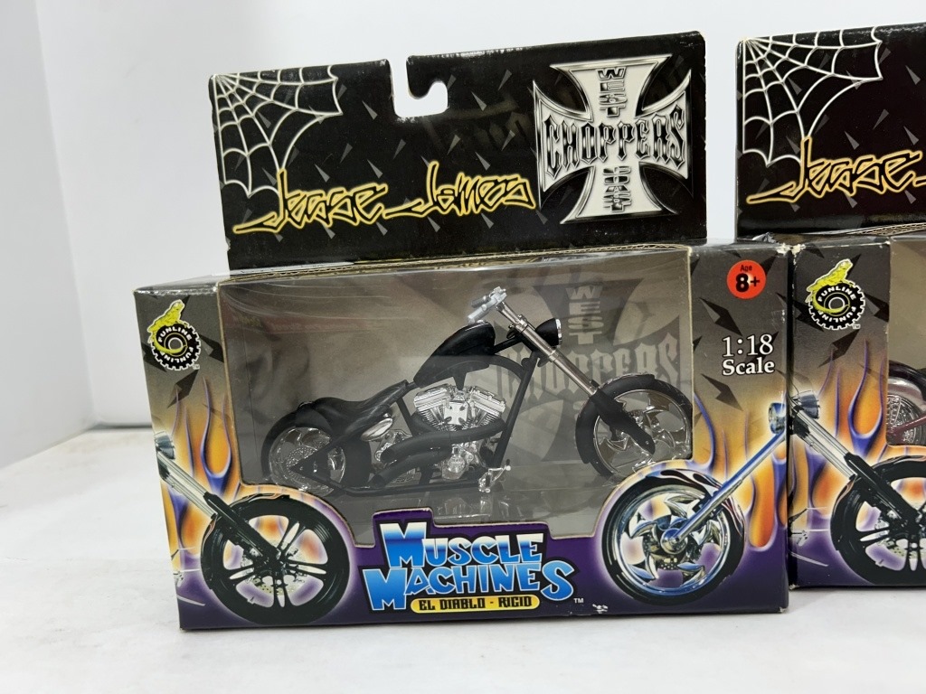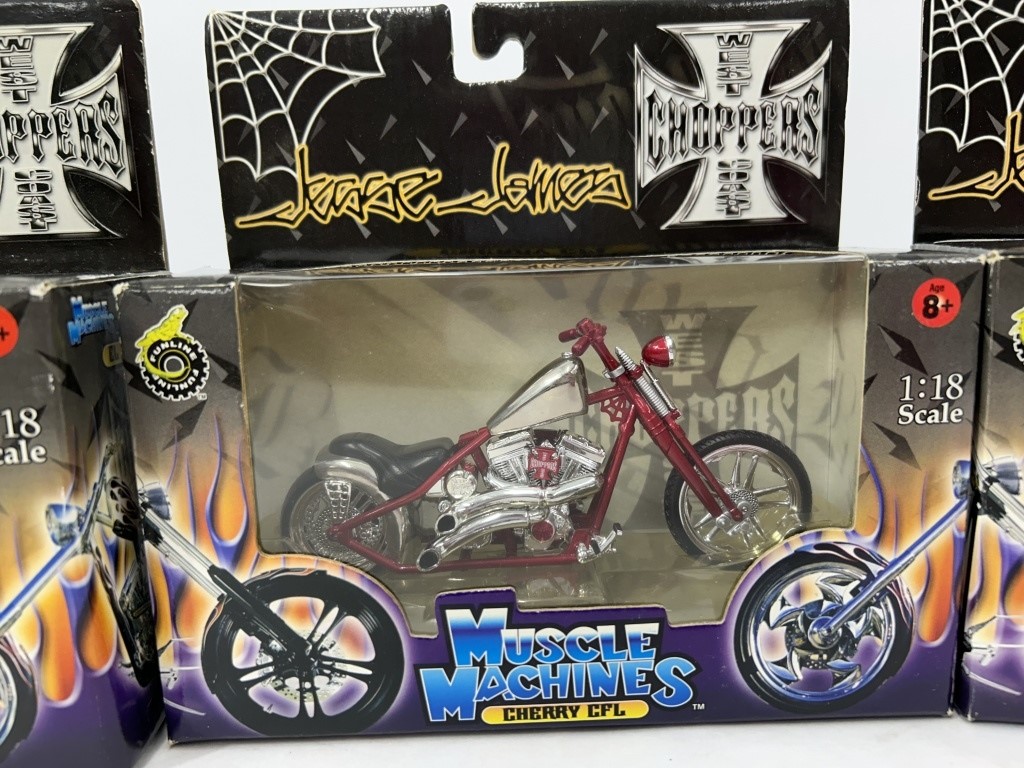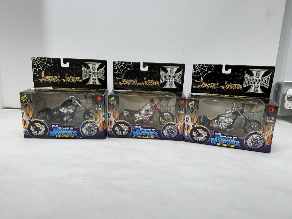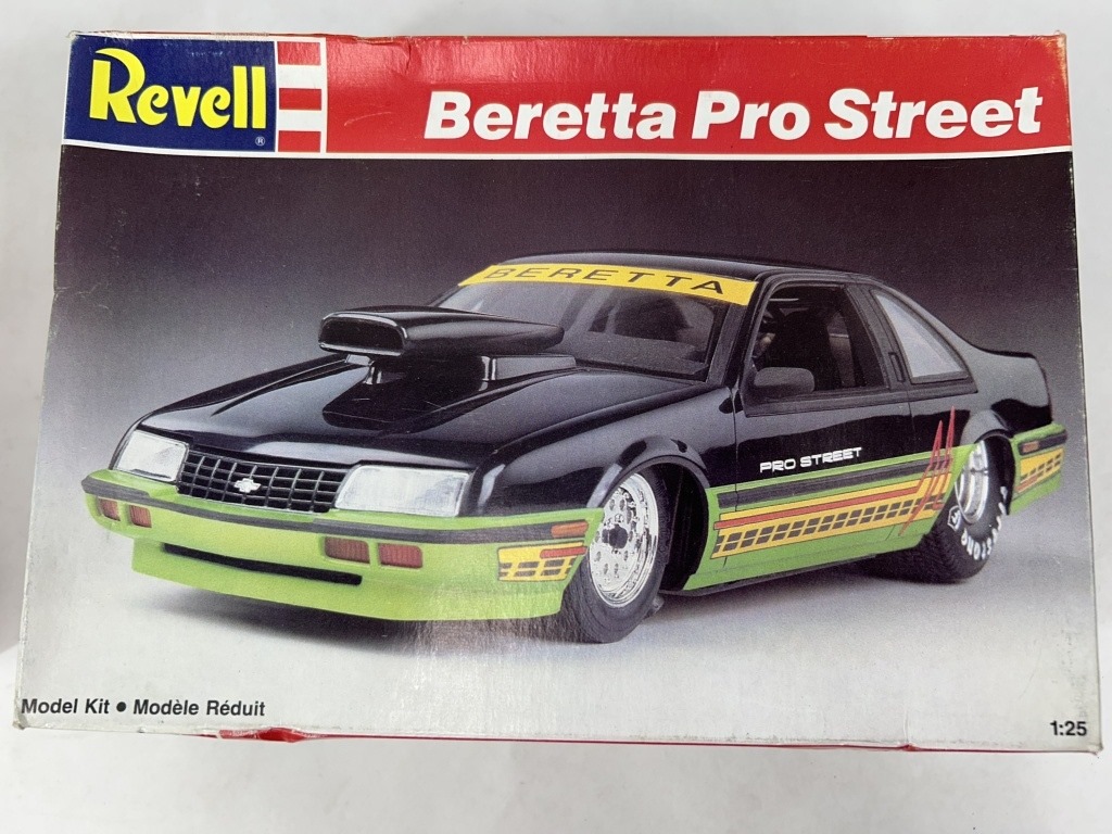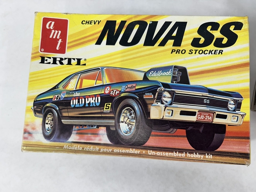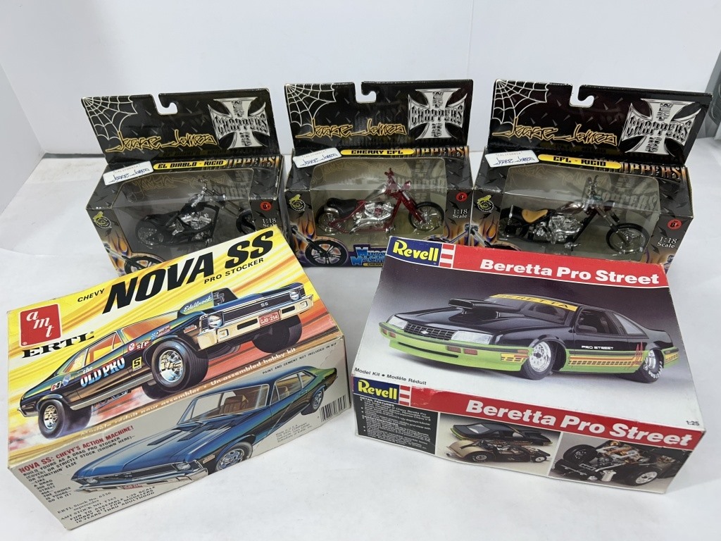 ERTL CHEVY NOVA SS PRO STOCKER MODEL CAR KIT AND REVELL BERETTA PRO STREET MODEL CAR KIT AND 3 MUSCLE MACHINES MOTORCYLES