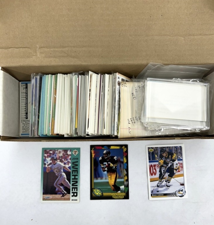 MISC SPORTS CARD LOT INCLUDING HOCKEY, BASBEBALL AND FOOTBALL WITH EMPTY PLASTIC CARD SHEETS