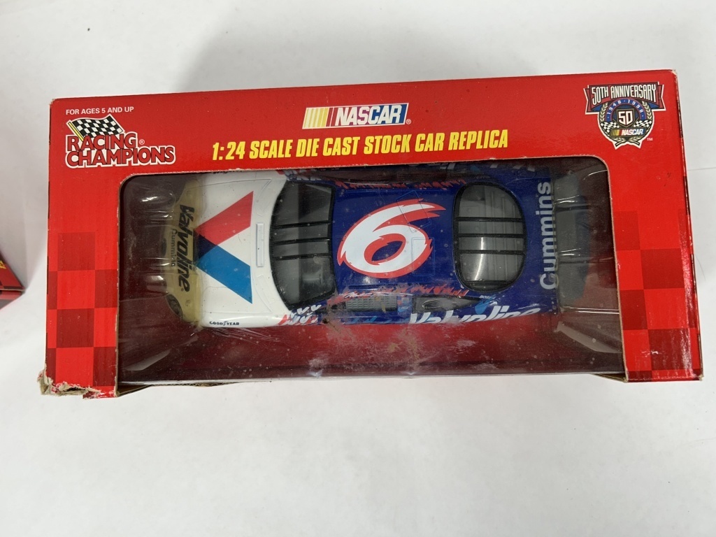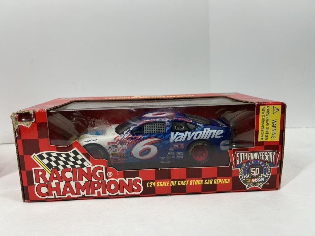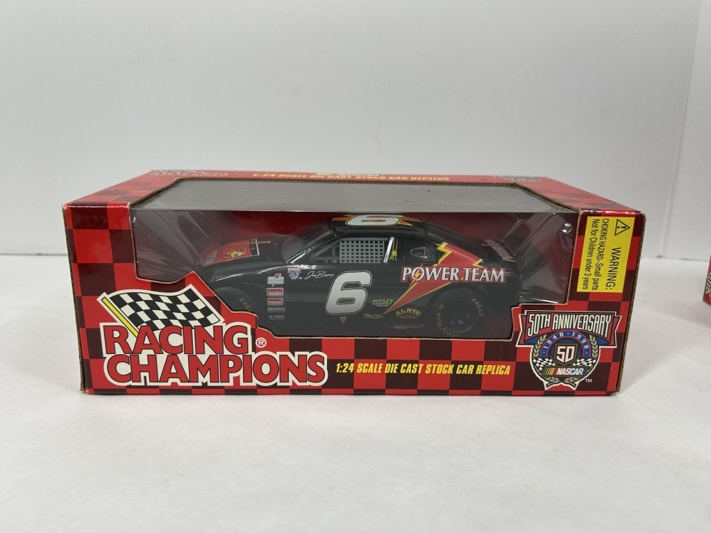 NOS 1/24 RACING CHAMPIONS 50TH ANNIVERSARY MARK MARTIN 1998 #6 VALVOLINE DIECAST STOCK CAR SN:H003 AND NOS 1/24 RACING CHAMPIONS 50TH ANNIVERSARY JOE BESSEY #6 POWER TEAM MONTE CARLO DIECAST STOCK CAR SN:F519