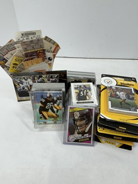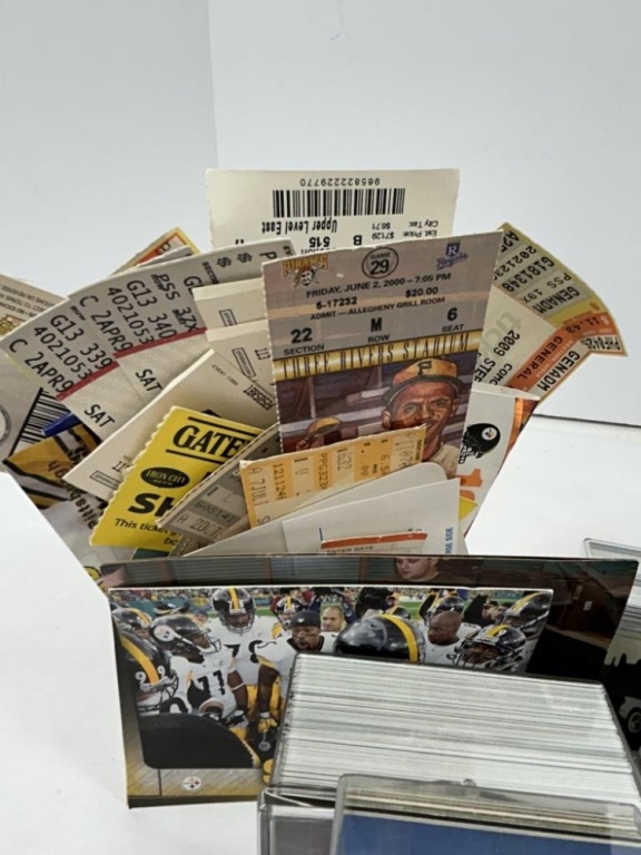 STEELERS CARDS INCLUDING MULTIPLE YEARS OF THE TEAM COLLECTIONS AS WELL AS TICKET STUBS FROM PITTSBURGH SPORTS TEAMS GAMES