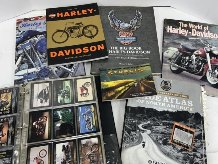 LOT OF HARLEY DAVIDSON BOOKS AND TRADING CARDS