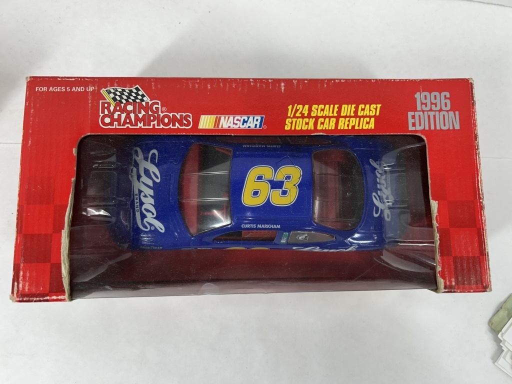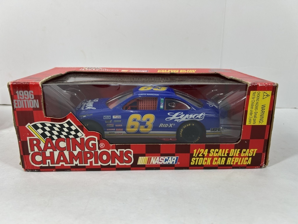 NOS 1/24 RACING CHAMPIONS 1996 EDITION CURITS MARKHAM #63 LYSOL PONTIAC GRAND PRIX DIE CAST AND NOS 1/24 RACING CHAMPIONS 50TH ANNIVERSARY ROBERT PRESSLEY #59 1998 DIE CAST S/N A109