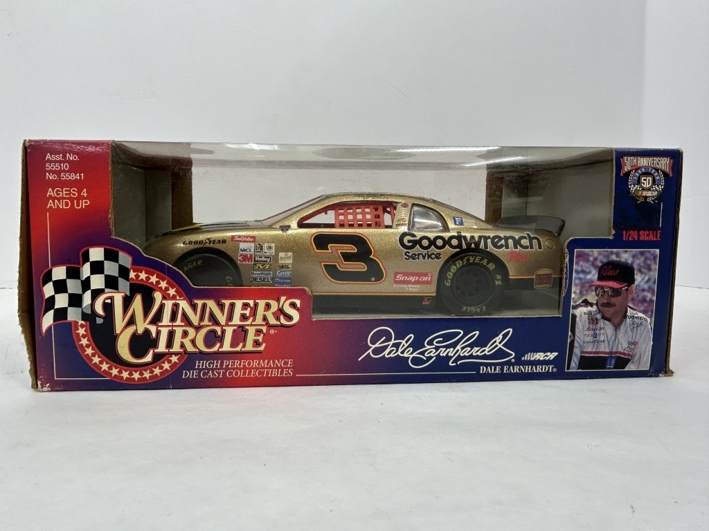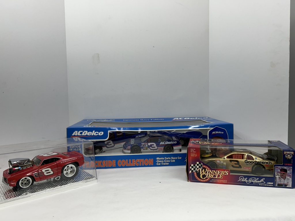NOS DALE EARNHARDT JAPANESE RACE EDITION TRACKSIDE COLLECTION, NOS 1/24 WINNER’S CIRCLE DALE EARNHARDT #3 GOODWRENCH NASCAR 50TH ANNIVERSARY SEASON, DALE EARNHARDT JR 1969 CAMARO MISCLE MACHINE