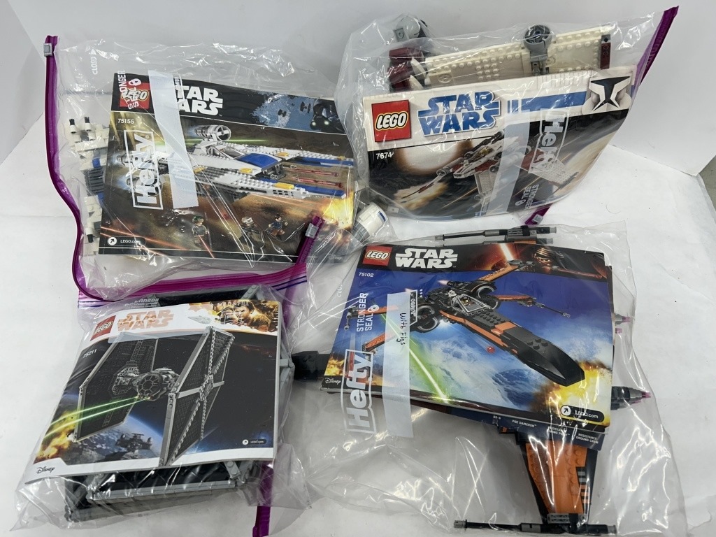 STAR WARS REBEL U-WING FIGHTER #75155, V-19 TORRENT #7674, POE’S X-WING FIGHTER #75102, IMPERIAL TIE FIGHTER #75211
