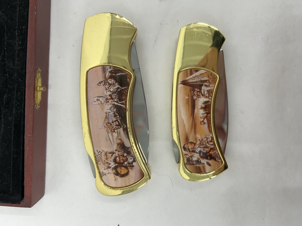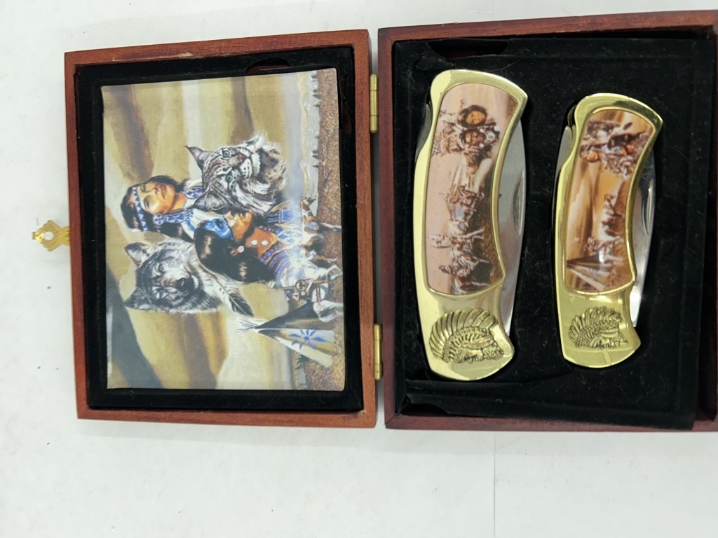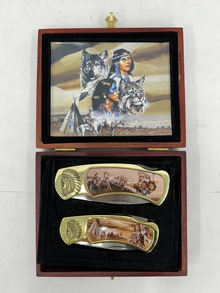 FRANKLIN MINT COLLECTOR’S FOLDING KNIVES NATIVE AMERICAN THEMED IN BOX